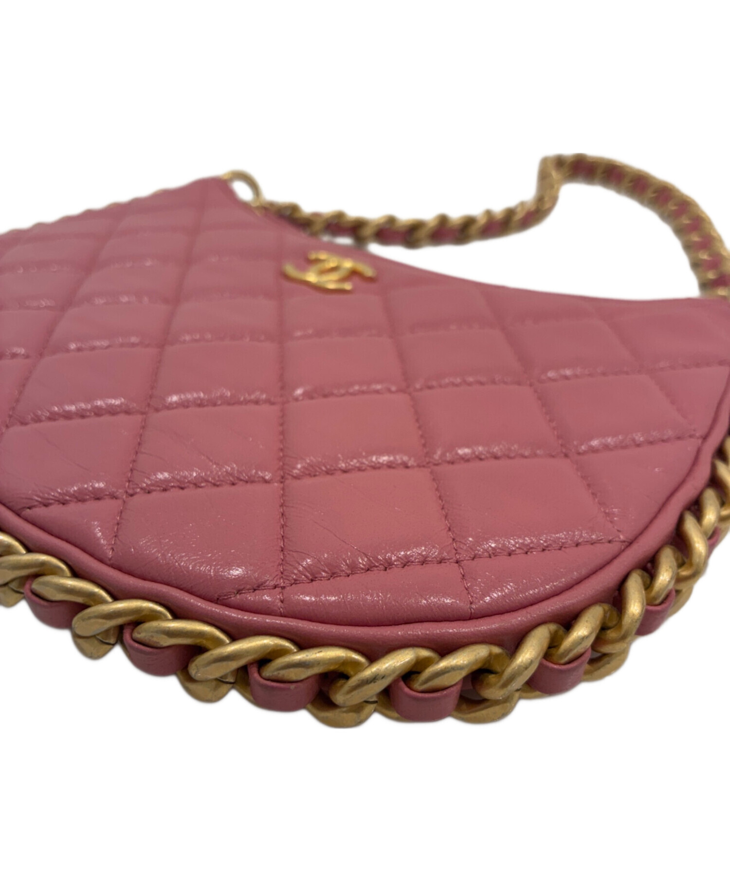| スタッフコメント | 丸みのあるフォルムが特徴的なCHANELのホーボーチェーンショルダーバッグでございます。ヴィンテージ感のあるゴールド金具のチェーンが印象的です。ミニ財布やハンカチなどの必要品を収納できます。肩にかけるとフィット感があります。 |
