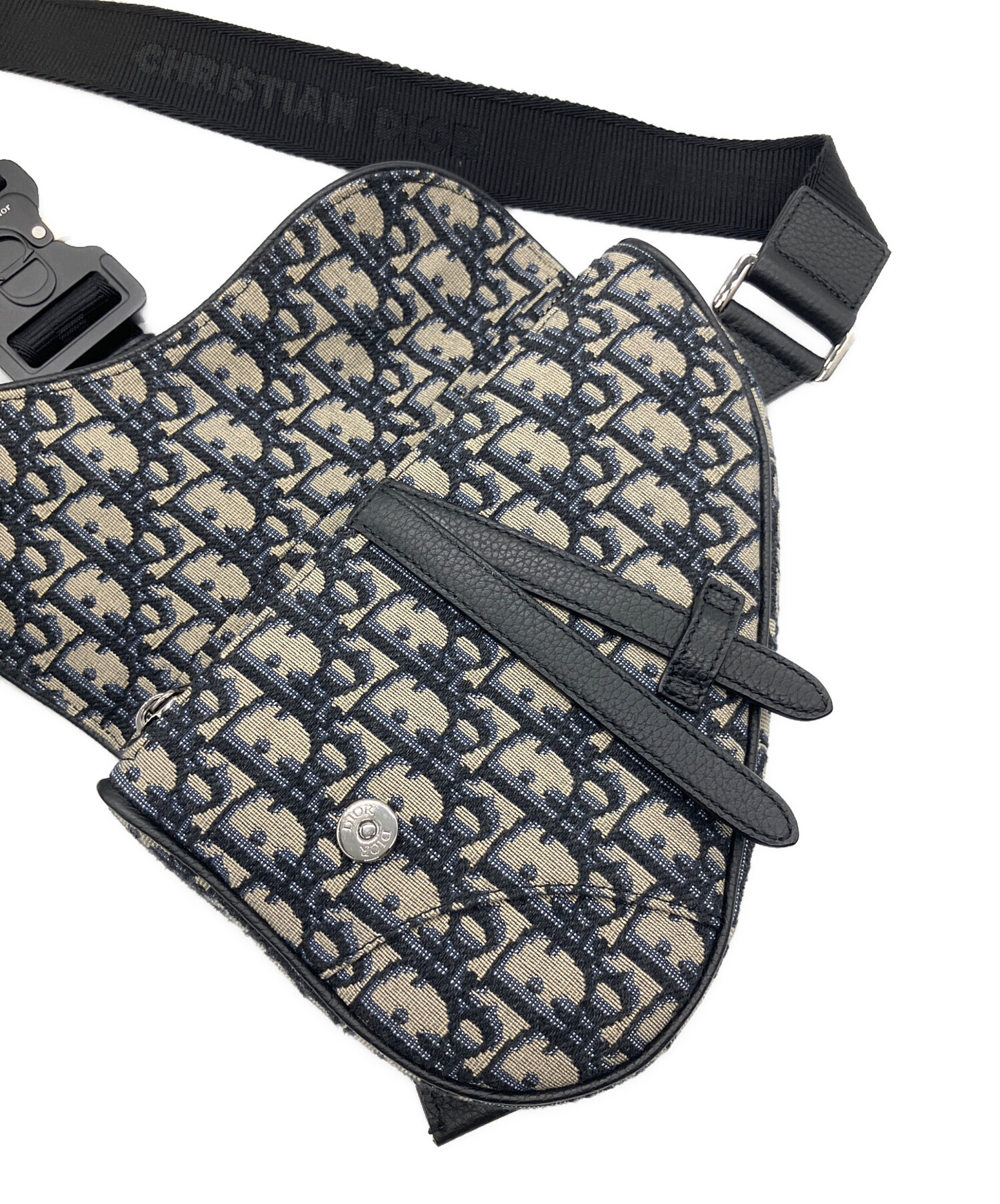 | スタッフコメント | キャンバス×レザー素材が存在感抜群のDIORのアイコンバッグであるオブリーク ジャカードサドルバッグでございます。バッグ全体にブランド英字が施されており、その高いデザイン性によりコーデの主役としてお使いいただけるオススメのアイテムです。 |