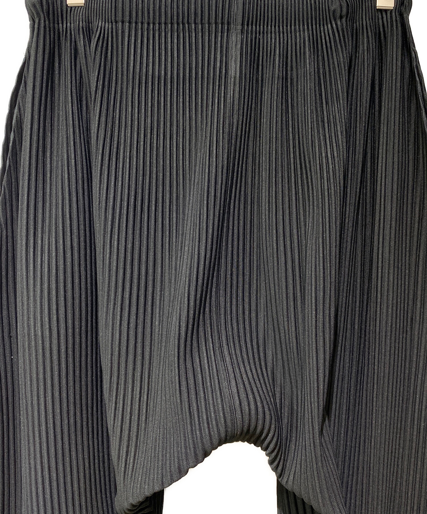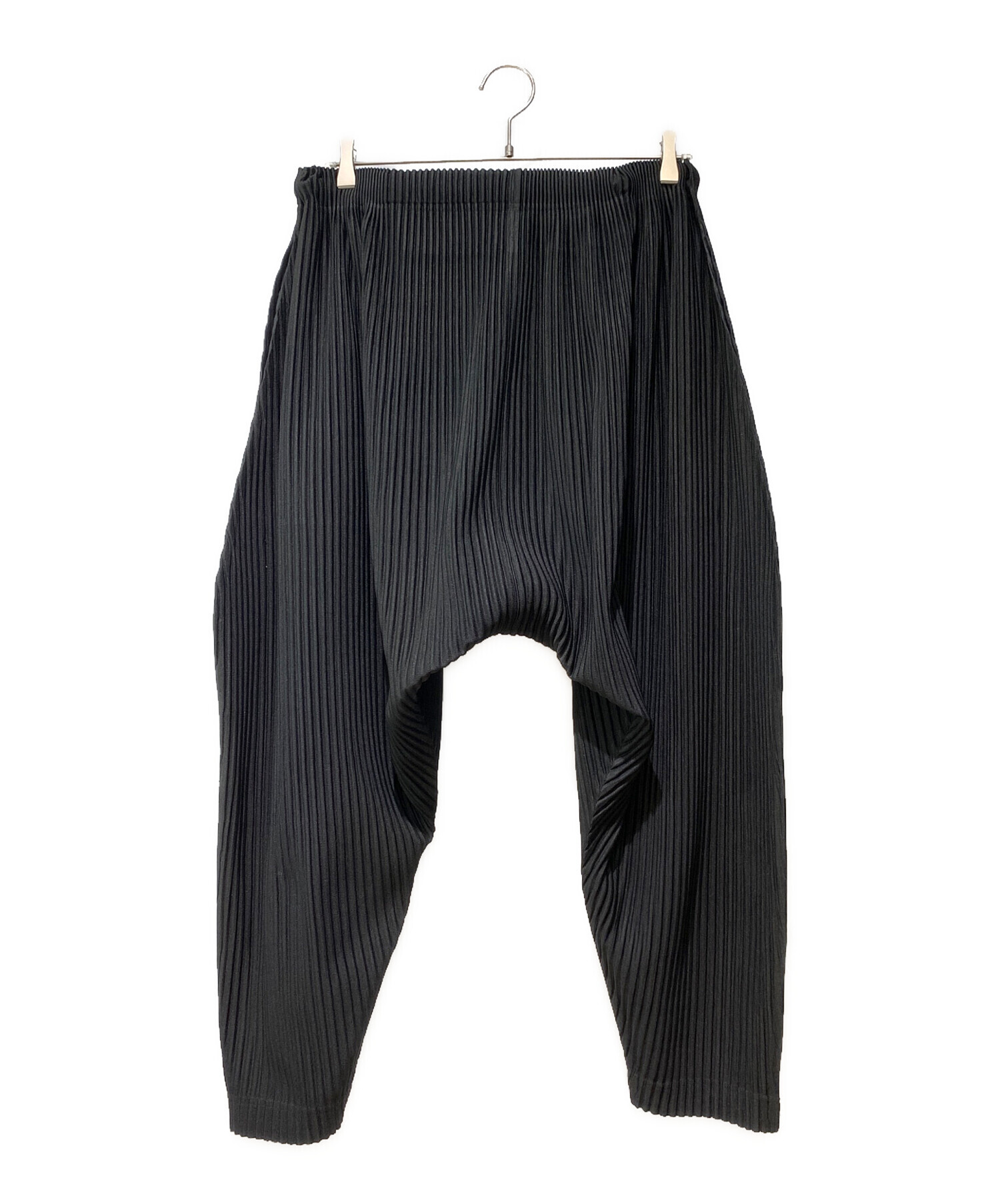 スタッフコメント ISSEY MIYAKEの代名詞の一つであるプリーツのサルエルパンツでございます。股上が深く、履き心地に優れ、トップスや季節を問わず活躍する汎用性の高い1着です。ポリエステル素材のため、お手入れのしやすさもポイントです。