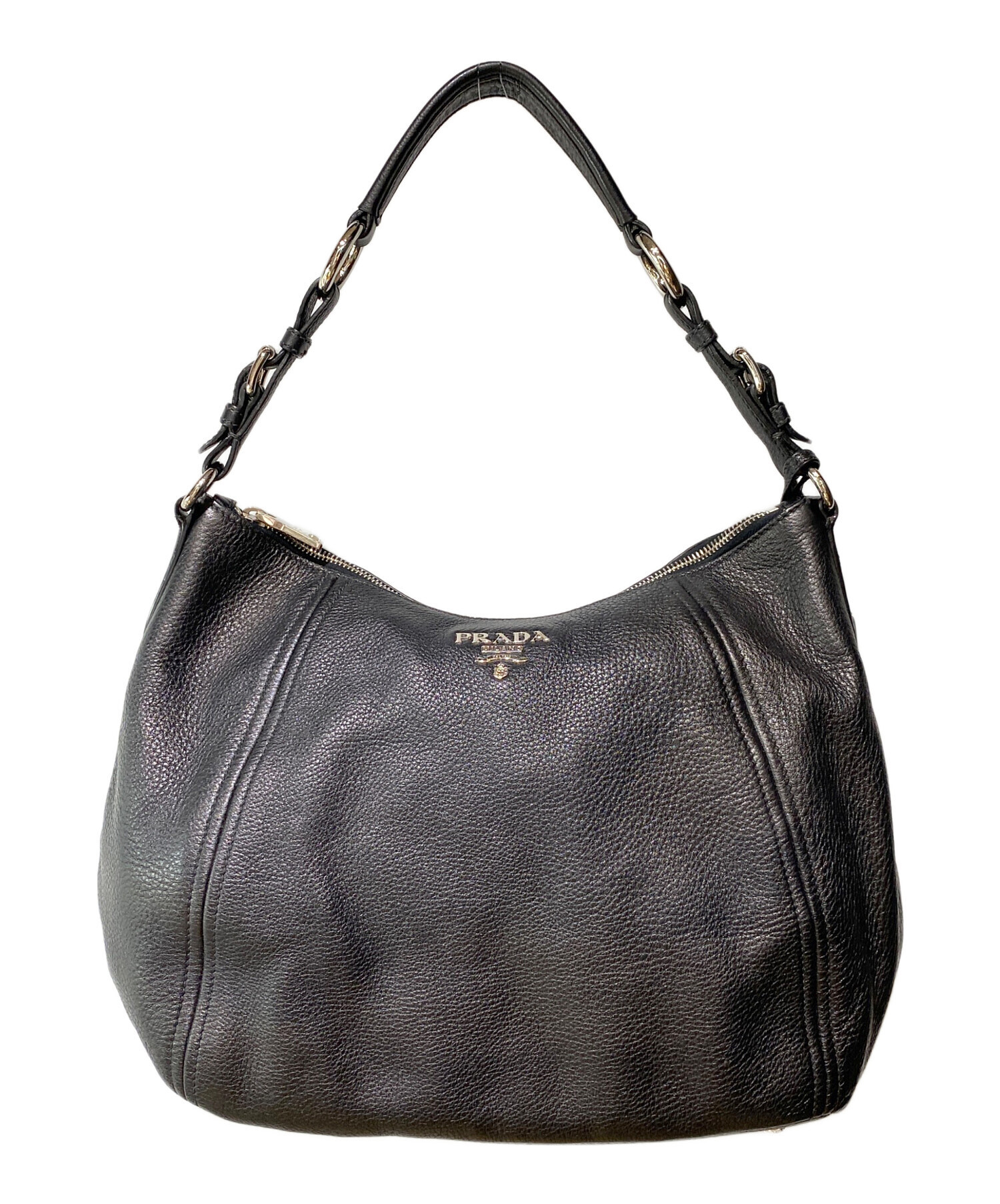 | スタッフコメント | フロントにPRADANのネームがデザインされたショルダーバックになります。シンプルかつ落ち着いた雰囲気があり高級感あふれるアイテムです。PRADAの洗練されたデザインとレザーに光沢が魅力的です。 |