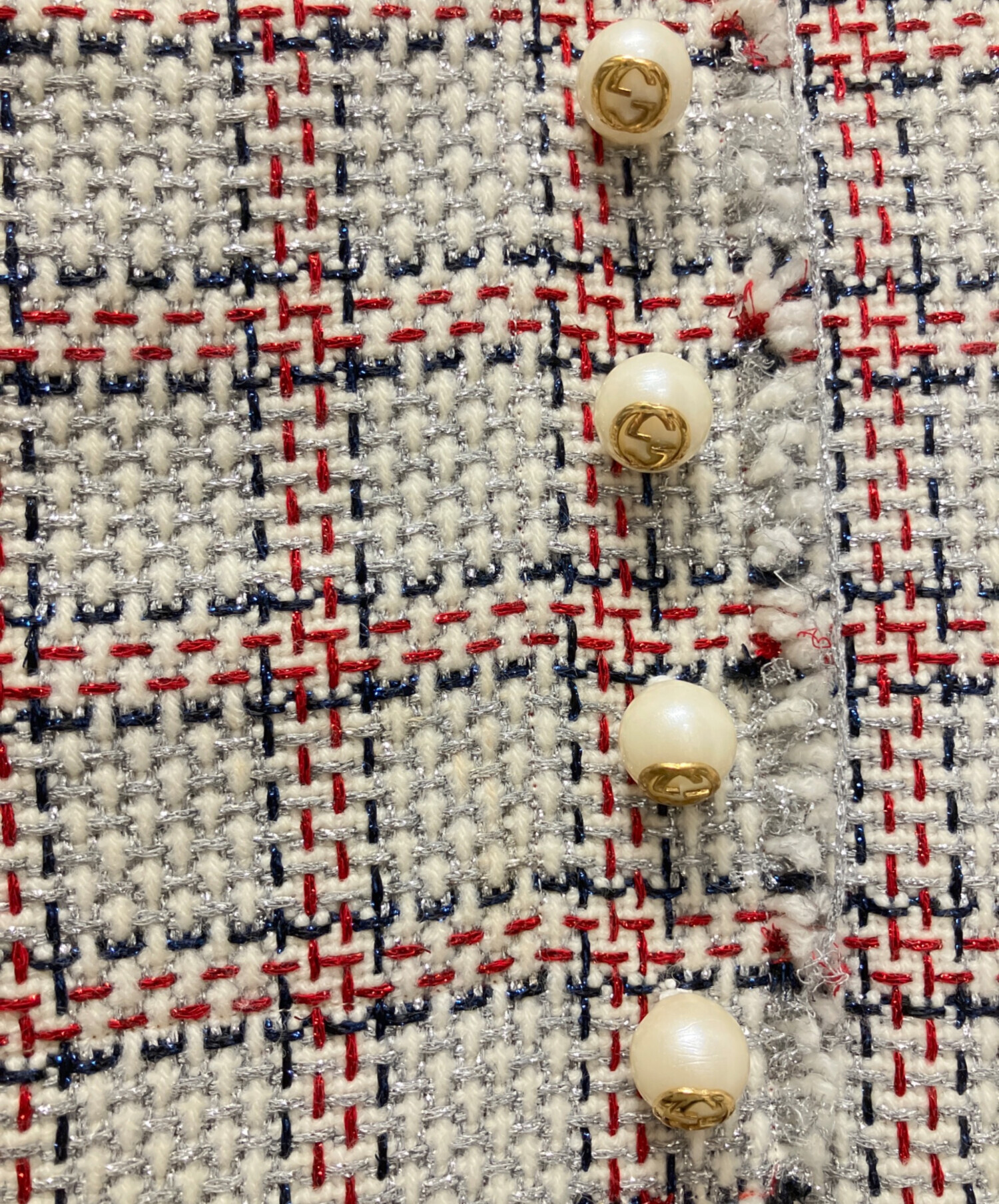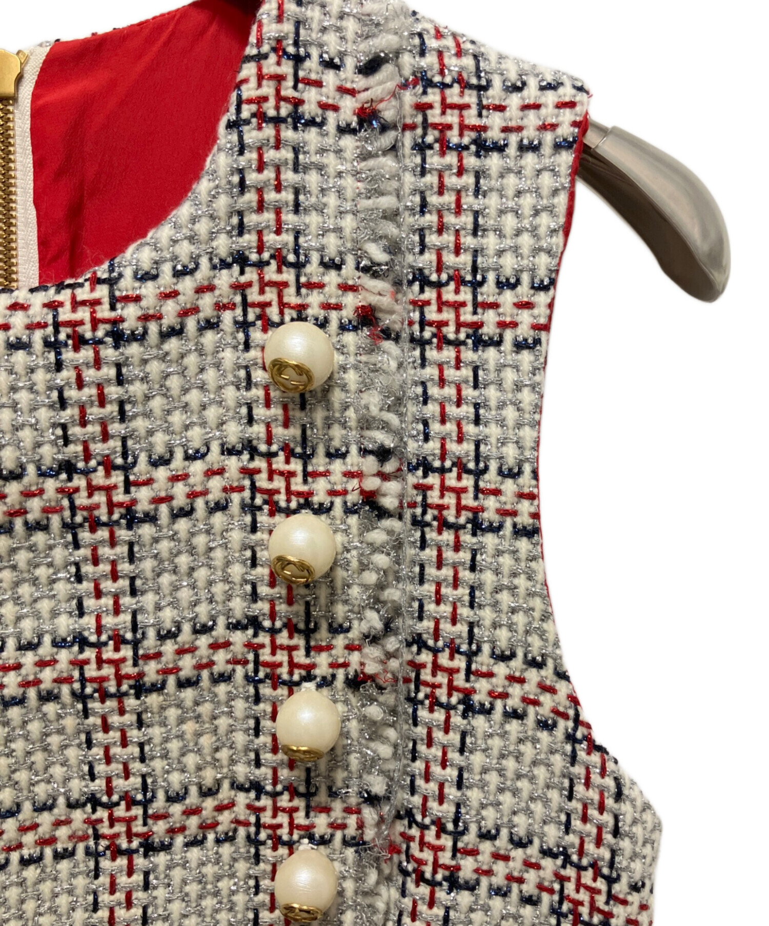 | スタッフコメント | GUCCIらしい気品漂うツイードワンピースでございます。ノースリーブのすっきりとしたシルエットに、表身頃に、施されたパール装飾が上品な華やかさを添えます。クラシカルでありながらモダンな印象を放つ、特別なシーンにも映える一品です。 |