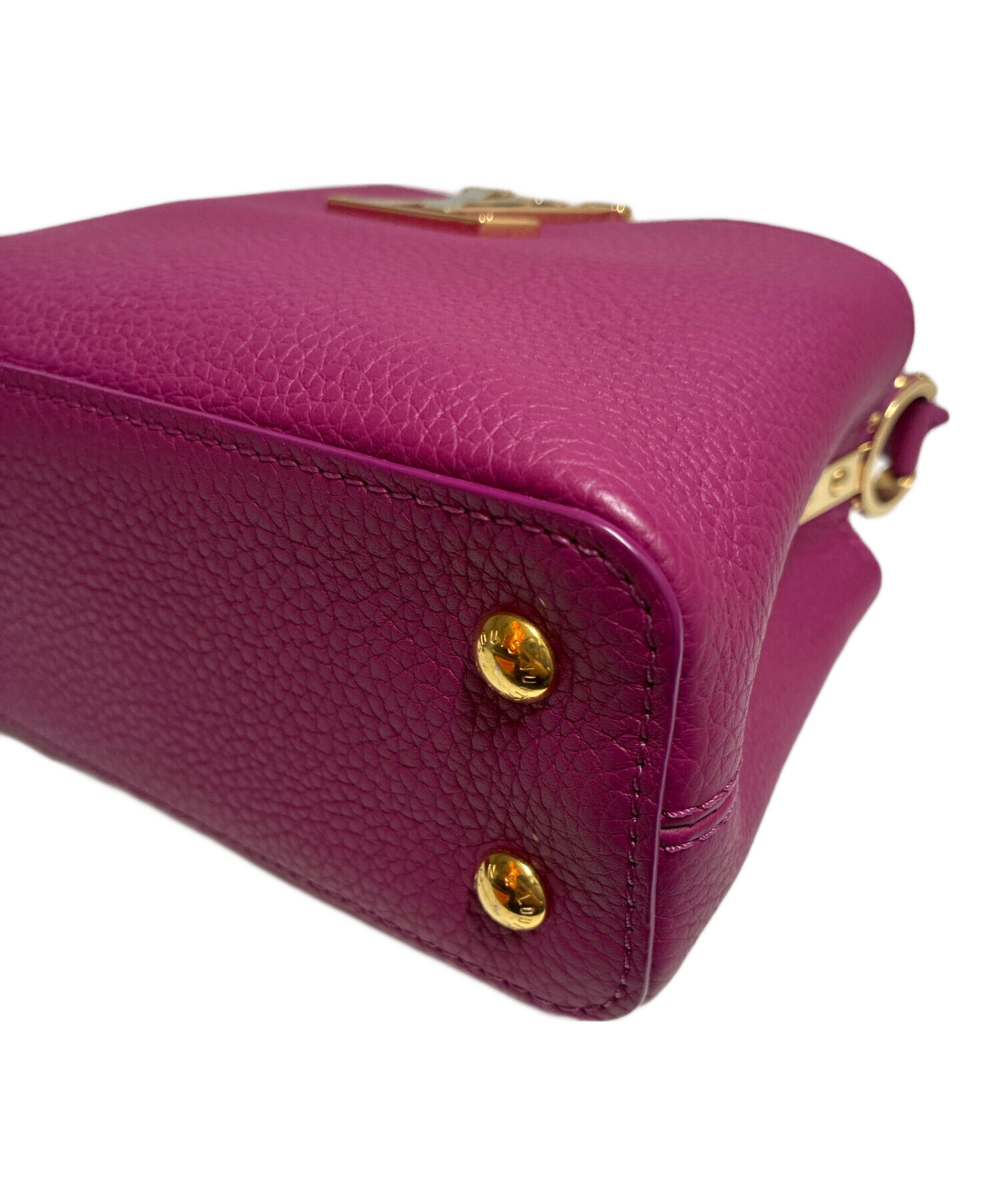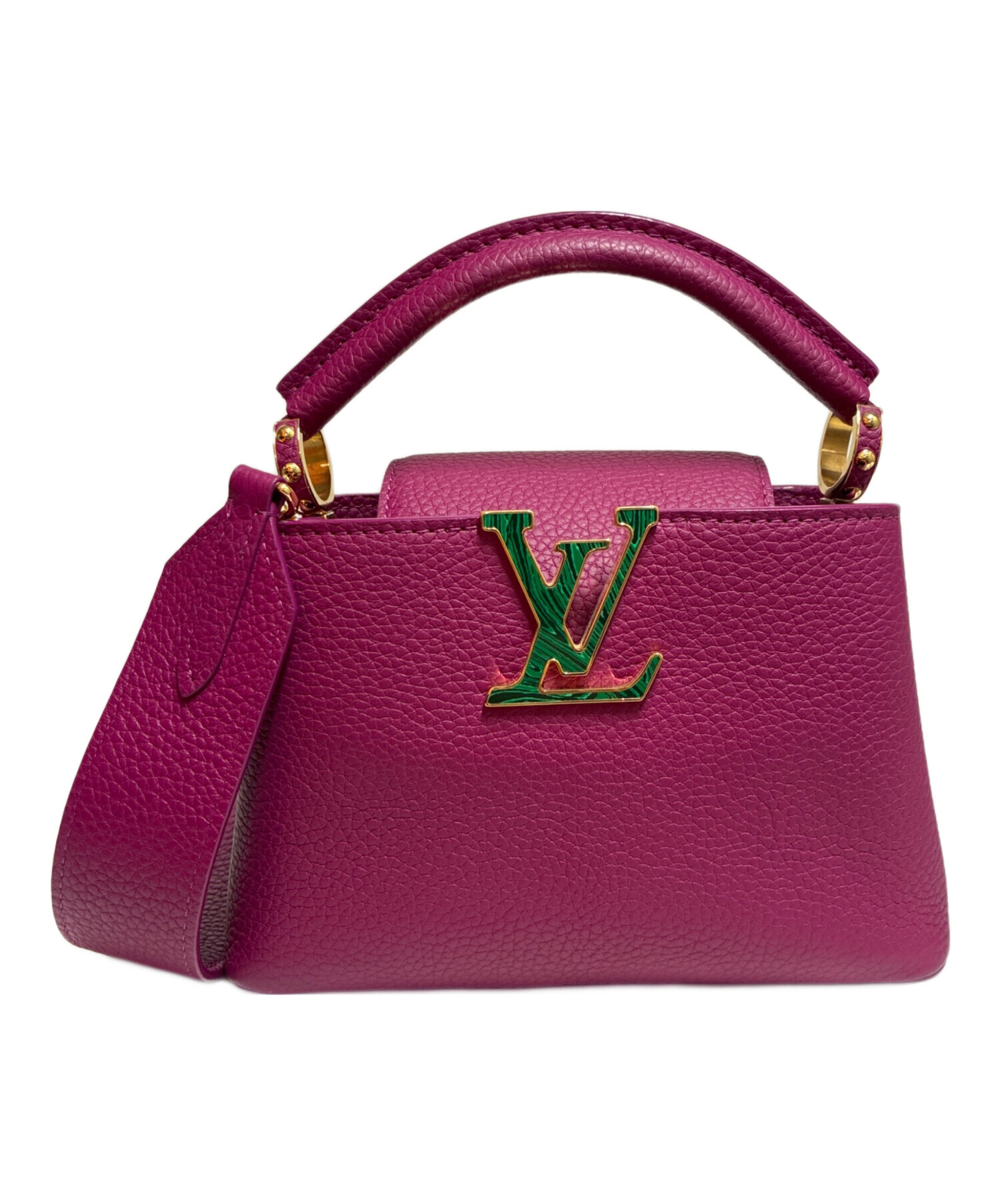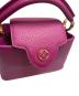 | スタッフコメント | フロントのLV金具のデザインが印象的なLOUIS VUITTONのカプシーヌミニでございます。中に仕切りがある為、ミニ財布やハンカチなど小さいながらも荷物を分けて収納することが可能です。鮮やかなパープルカラーがコーディネートのアクセントになります。 |
