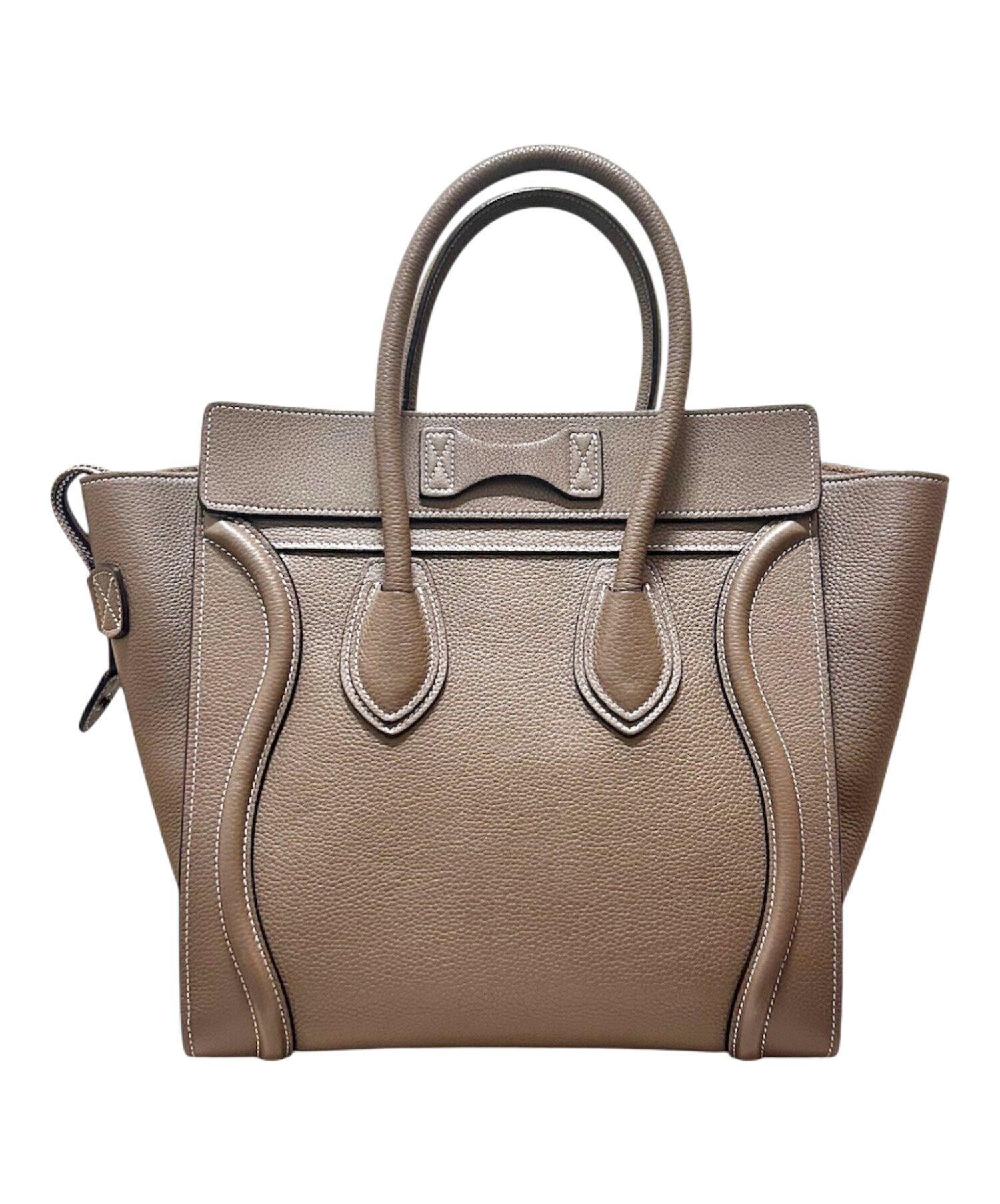 | スタッフコメント | セリーヌを代表するアイコンバッグラゲージでございます。サイズは、日常使いしやすいマイクロショッパー。立体感のあるフロントジップや流れるような曲線フォルムが、シンプルな装いにラグジュアリーなアクセントを添えてくれます。上質なレザーの質感が、持つたびに気分を高めてくれるアイテムです。 |