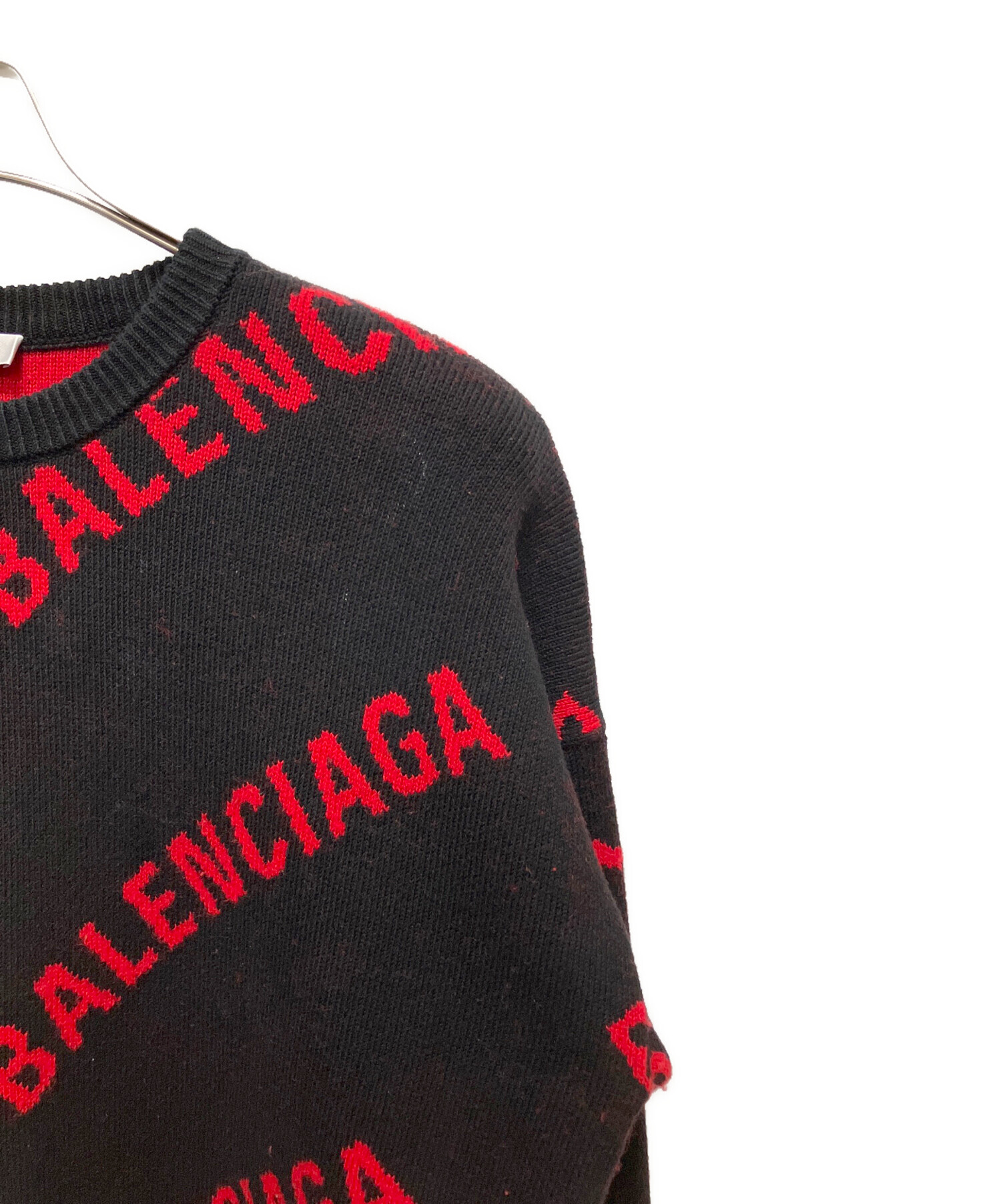 • BALENCIAGA(バレンシアガ)BALENCIAGA (バレンシアガ) オールオーバーロゴニット 625329 T3178 ブラック サイズ:XSの古着・服飾アイテム リブネック若干の汚れ有