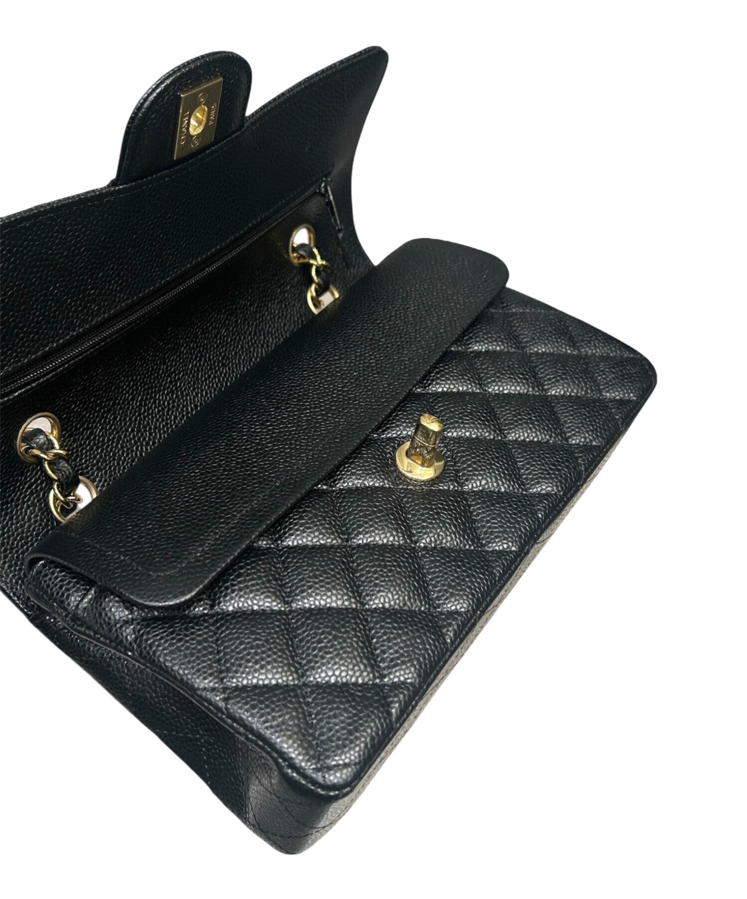| スタッフコメント | CHANELの「マトラッセ23」でございます。サイズが23のため、必要最低限のお荷物は十分に入り、使い勝手がいい点も魅力的です。ブラックとゴールド金具の相性が良く、高級感もあり、フォーマルなシーンだけではなくカジュアルなシーンにもご使用いただけるオススメのアイテムです。キャビアスキン素材をキズがつきにくく、長くお使いいただけます。 |