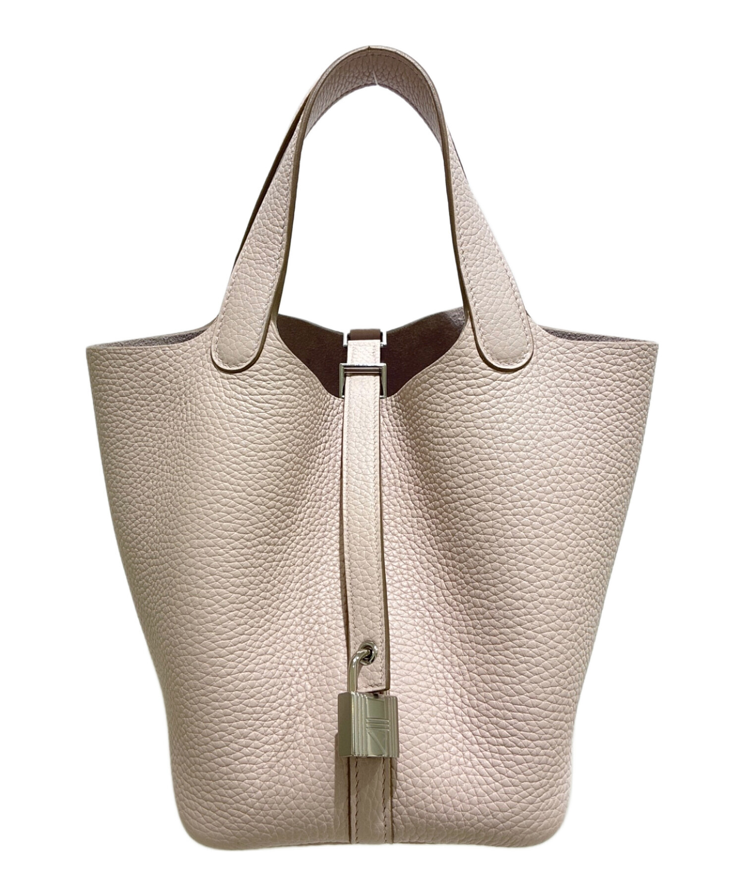 | スタッフコメント | 代表的なハンドバッグであるピコタンロックでございます。サイズはPMとなっており、コンパクトながらにも財布やコスメ等の必需品を難なく収納可能な点が魅力的です。また、素材にはトリヨンクレマンスを使用している為、その特有のシボ感によりダメージが目立ちにくく耐久性に優れております。存在感のあるモークベールカラーで様々なシーンで活躍するオススメのアイテムです。 |