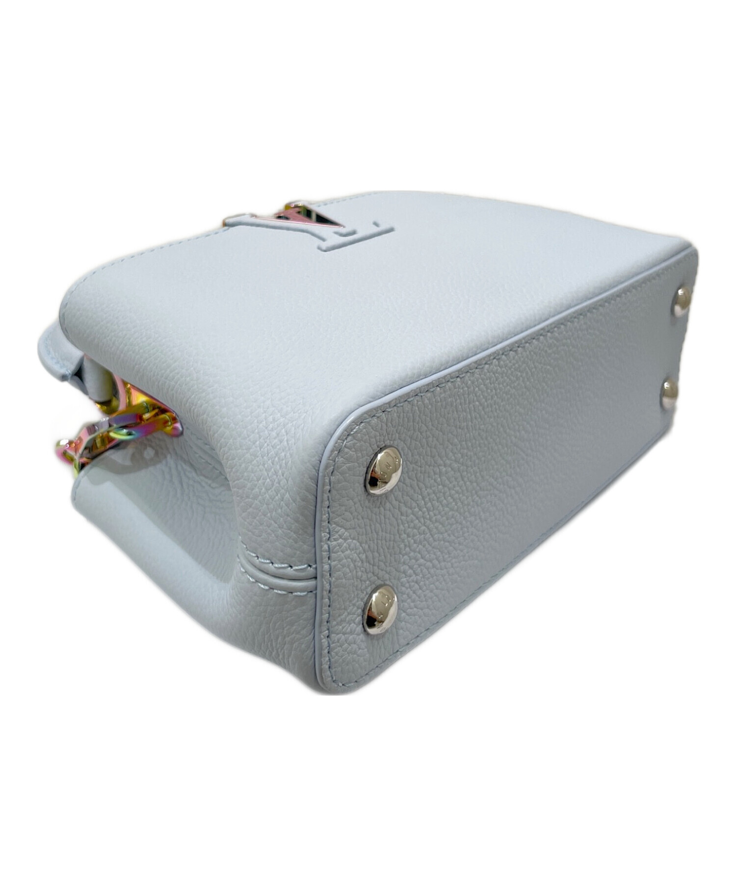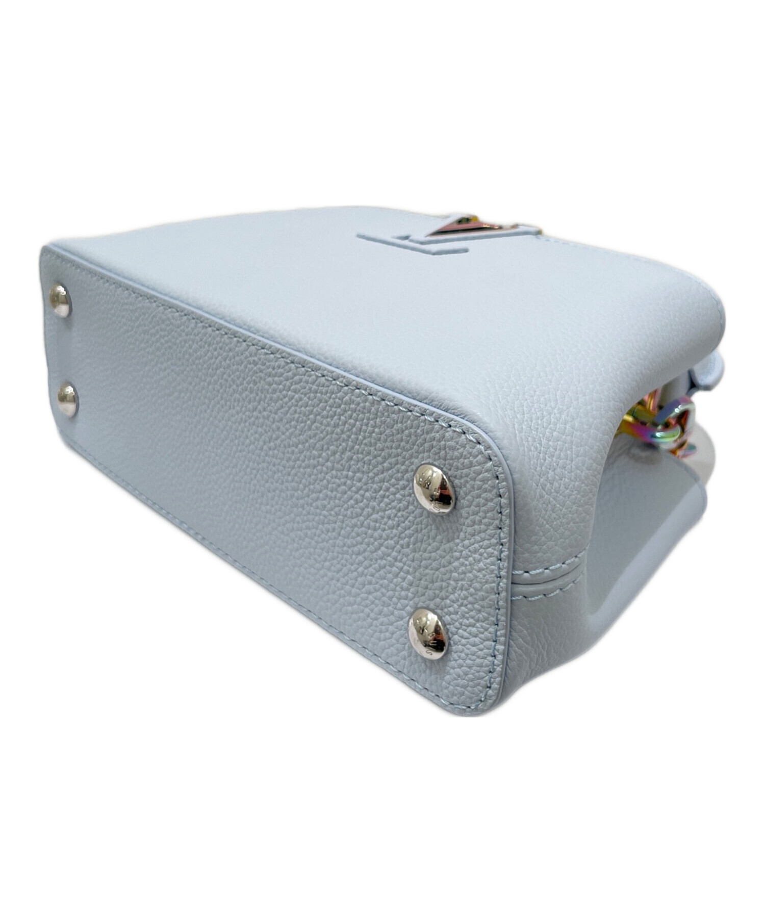 | スタッフコメント | ハンドバッグとしてもショルダーバッグとしても使える2WAY仕様です。携帯電話やミニ財布、リップなど必要最低限のアイテムがスマートに収納できる、日常使いにぴったりのサイズ感となっております。淡くソフトな青色は、上品な印象で、大人っぽく洗練された雰囲気を演出します。 |