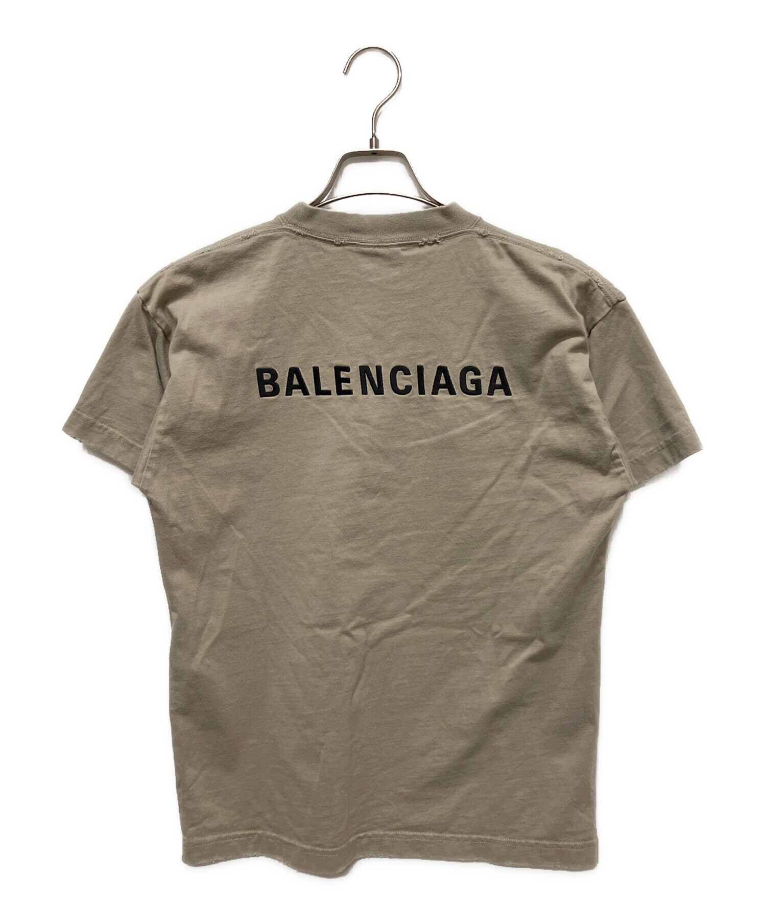 • BALENCIAGA(バレンシアガ)BALENCIAGA (バレンシアガ) ダメージ加工ロゴTシャツ カーキ サイズ:XSの古着・服飾アイテム 襟ヨレ・ダメージ加工有