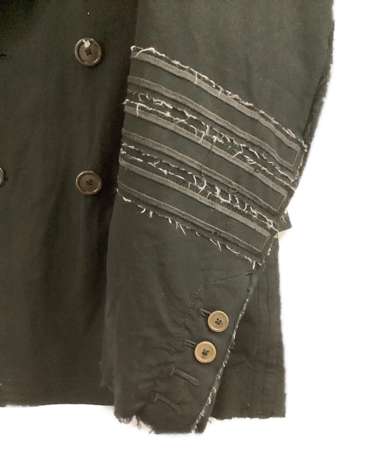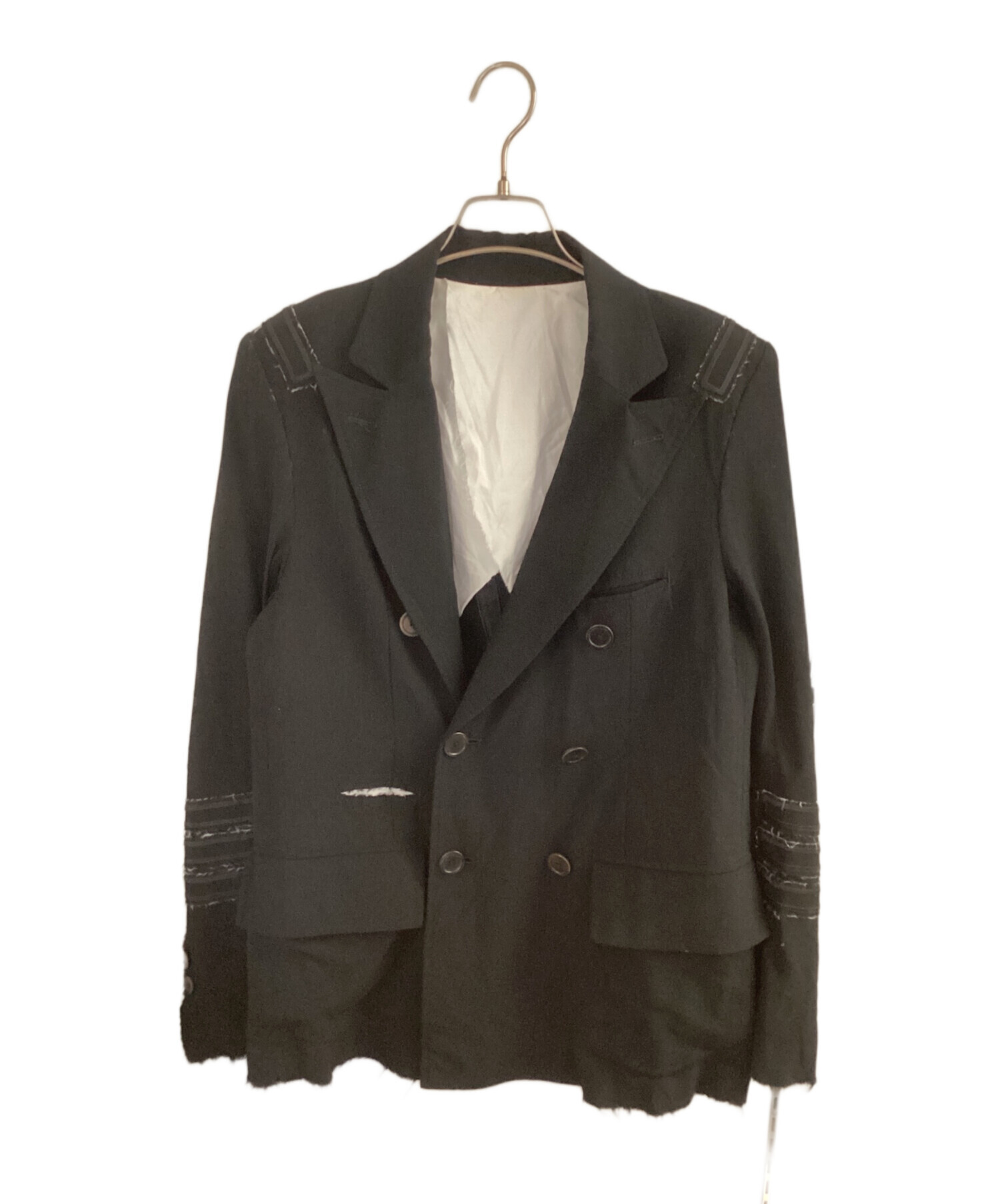 | スタッフコメント | 各所にパッチワークやホツレ加工が施されているダブルジャケットです。薄く滑らかな素材を使用しています。シンプルなコーディネートも格上げする一着です。 |