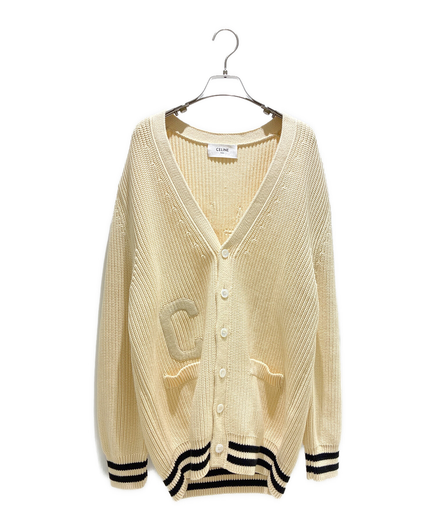 スタッフコメント CELINEのロゴワッペンVネックカーディガンでございます。バックに刺繍された、CELINEロゴが高級感を醸し出しており、シンプルながら洗練されたデザインとなっています。コーディネートの幅を広げてくれるアイテムになっています。