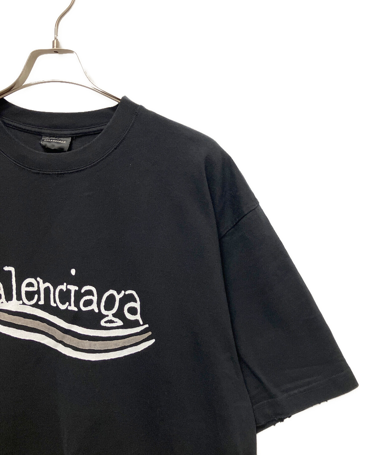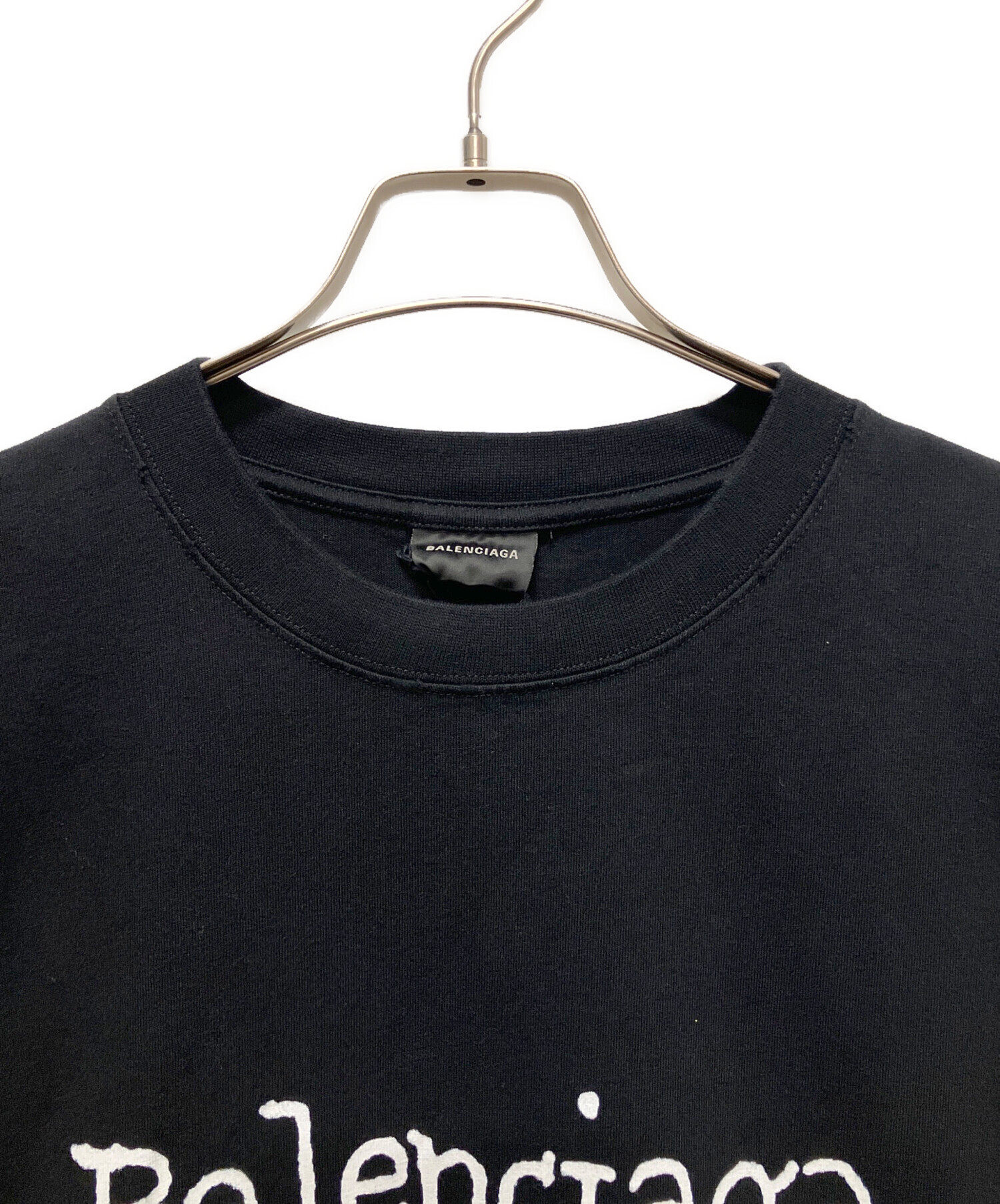 スタッフコメント ダメージ加工による独特の風合いと、フロントに施された手描き風のグラフィックが特徴的な一枚のBALENCIAGAのTシャツでございます。ブランドらしいオーバーサイズシルエットで、リラックス感とストリートライクな存在感を兼ね備えているお品です。