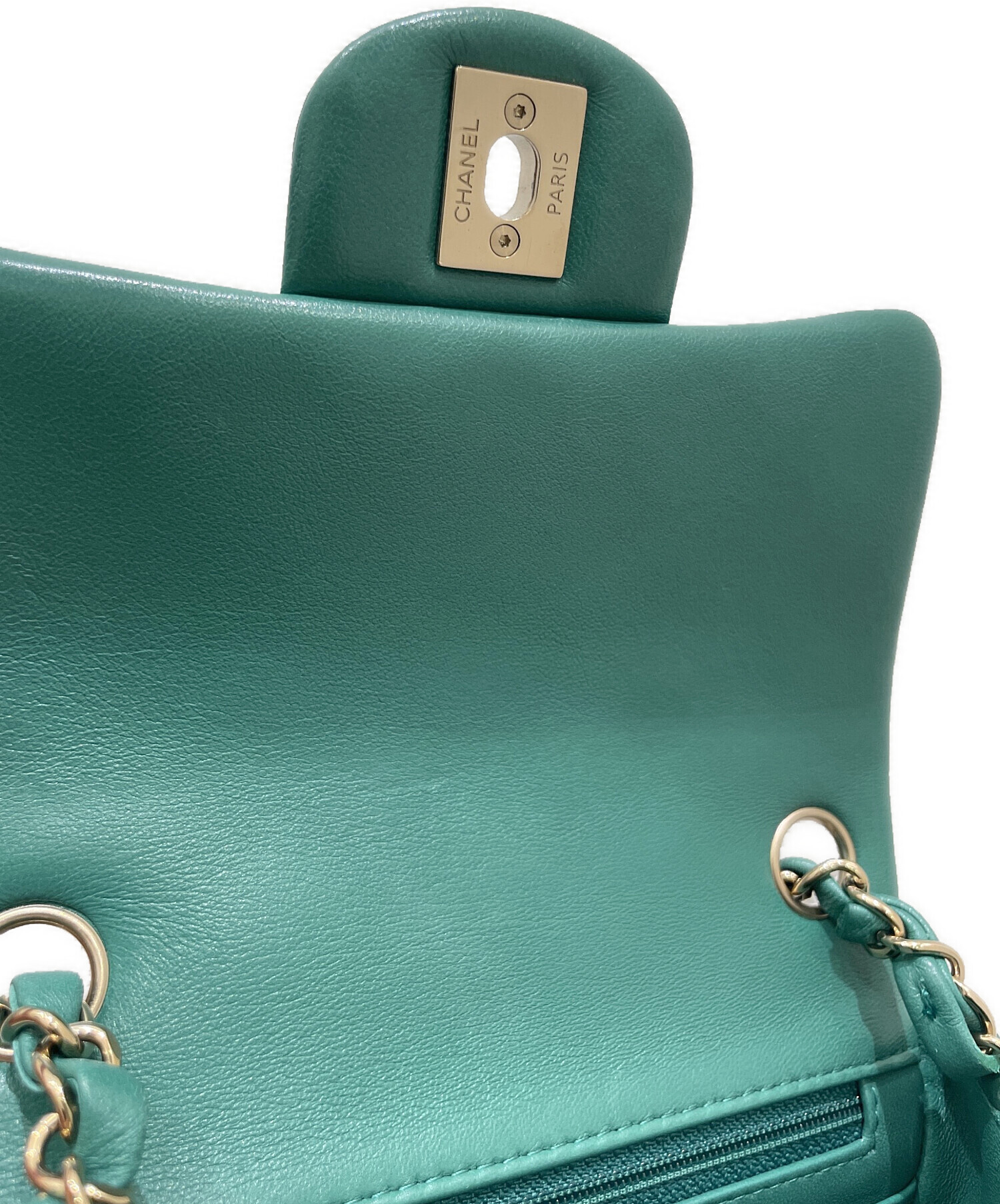 | スタッフコメント | CHANELのマトラッセでございます。目を惹くグリーンは、コーデの中心アイテムになること間違いなしです。また小ぶりながら2つ折り財布を収納していただけます。日常使いに非常に便利で、軽量ながら必要なアイテムをしっかり収納できます。 |