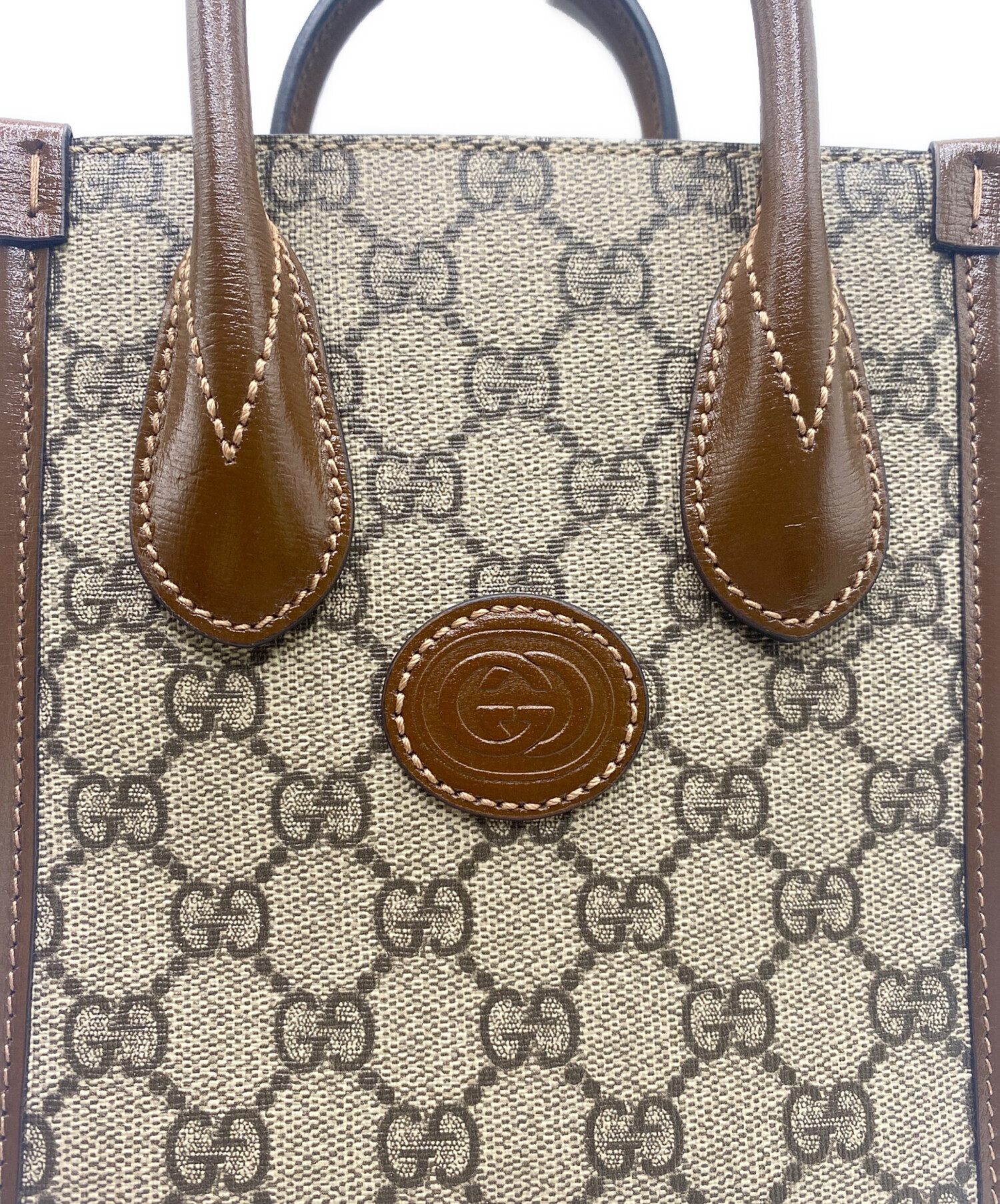 | スタッフコメント | GGスプリームキャンバスをまとい、落ち着いたベージュ×ブラウンのトーンで仕上げられたミニトートバッグでございます。洗練された「インターロッキングG」のデザインがアクセントになっており、ブランドの伝統性とモダンな雰囲気を併せ持っています。手持ち用のトップハンドルに加え、取り外し・調整可能なショルダーストラップが付属しており、2WAYでお使いいただけます。 |