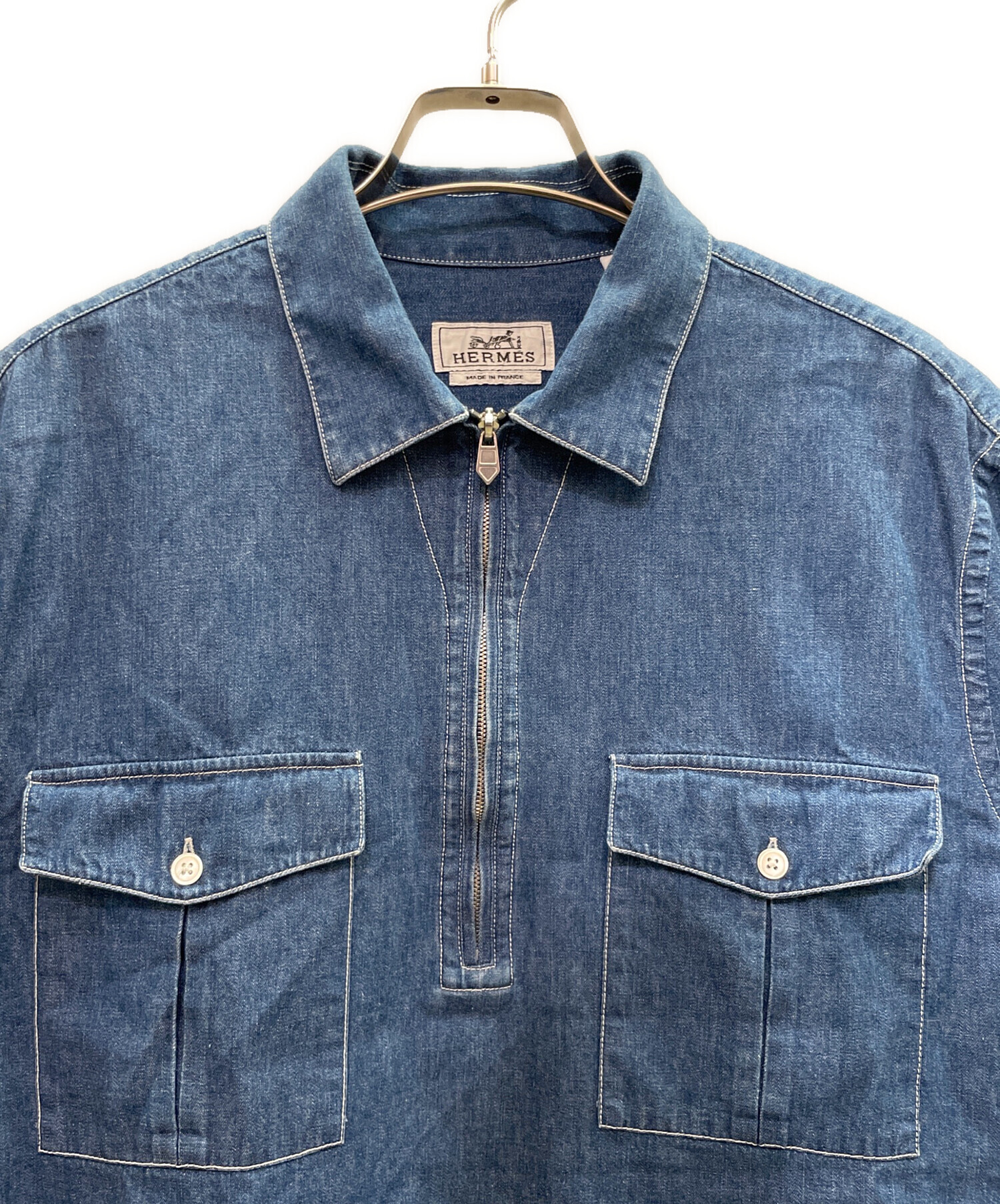 ハーフジップ デニムシャツ