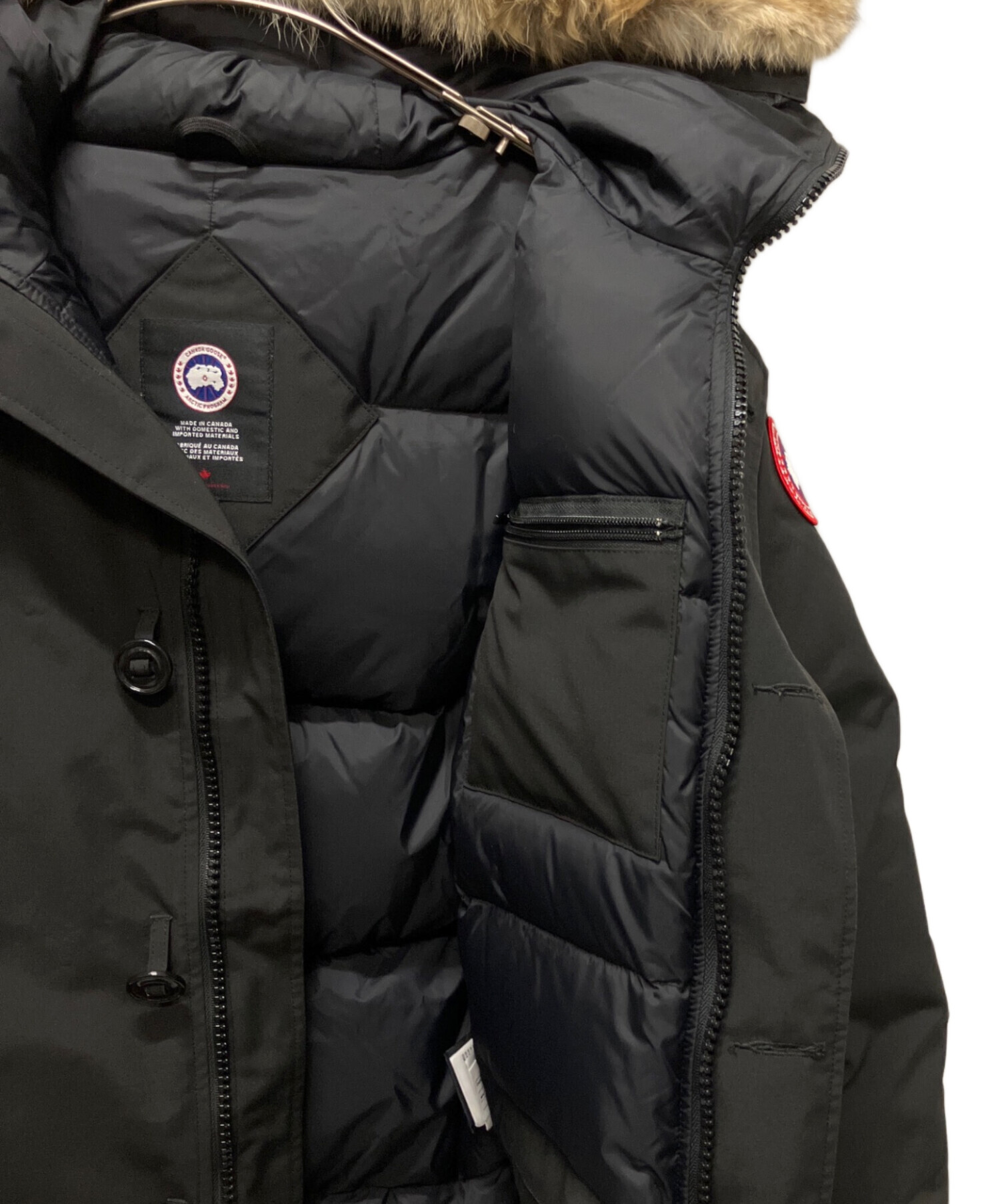 | 素材 | 表地:ポリエステル84% コットン16% 裏地:ナイロン100% リブ部分:アクリル98% ポリエステル1% ポリウレタン1% 中わた:ダウン80% フェザー20% 毛皮部分:コヨーテ |