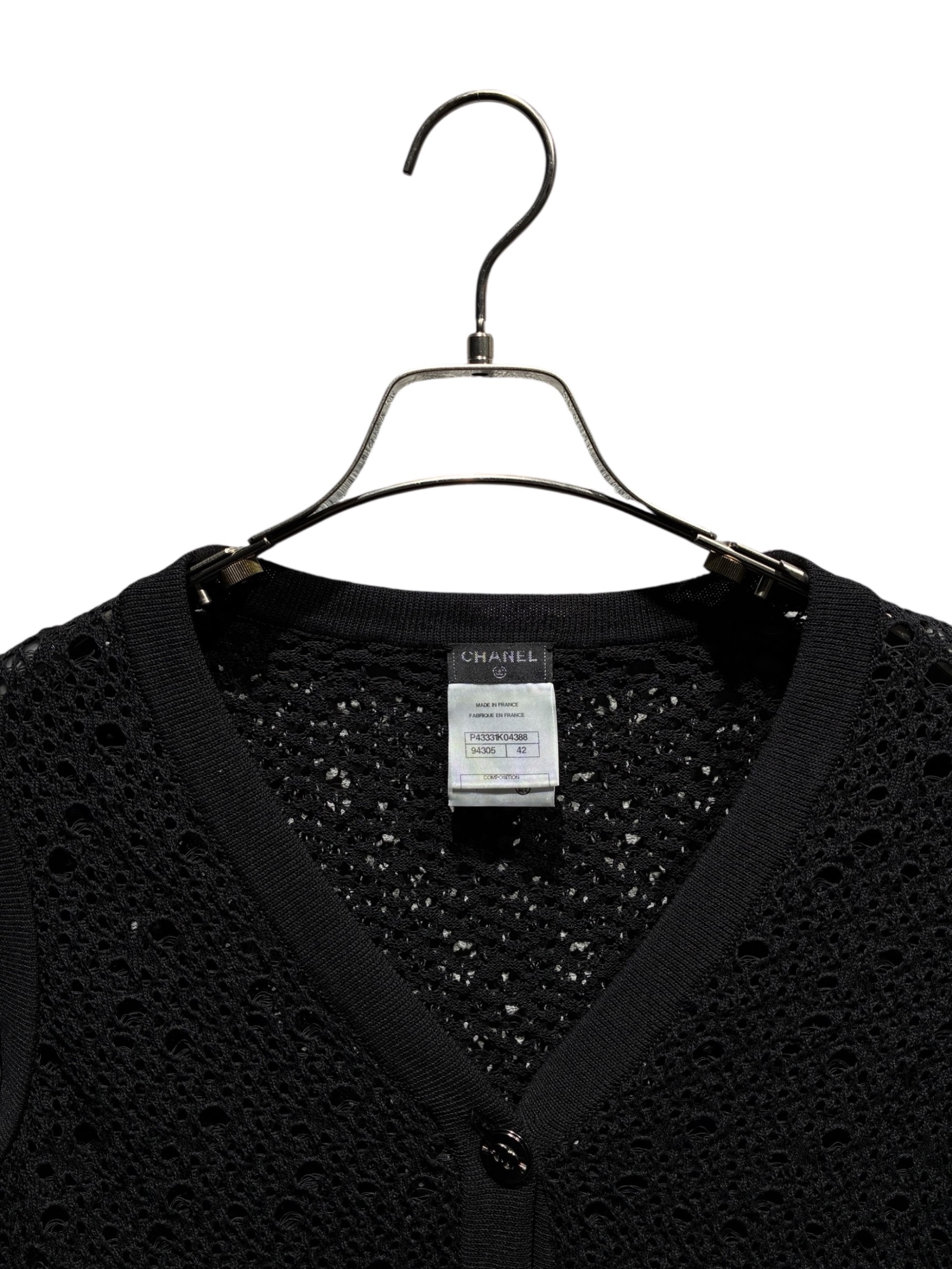 | スタッフコメント | CHANEL(シャネル)のメッシュカーディガン。ココボタンが映えるローゲージ編みで、軽やかな透け感が魅力。程よいゆとりのシルエットで重ね着しやすく、季節の変わり目の羽織りとして幅広く活躍いたします。 |