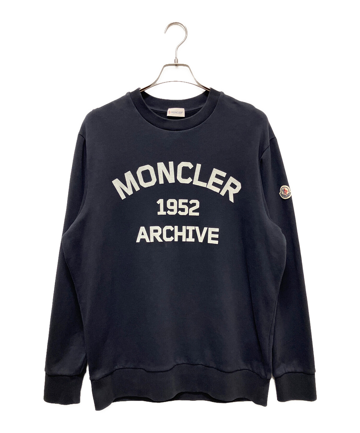 • MONCLER(モンクレール)MONCLER (モンクレール) Flocked Logo Cotton Sweatshiert/フロッキーロゴスウェット ネイビー サイズ:Lの古着・服飾アイテム 表面に汚れ有