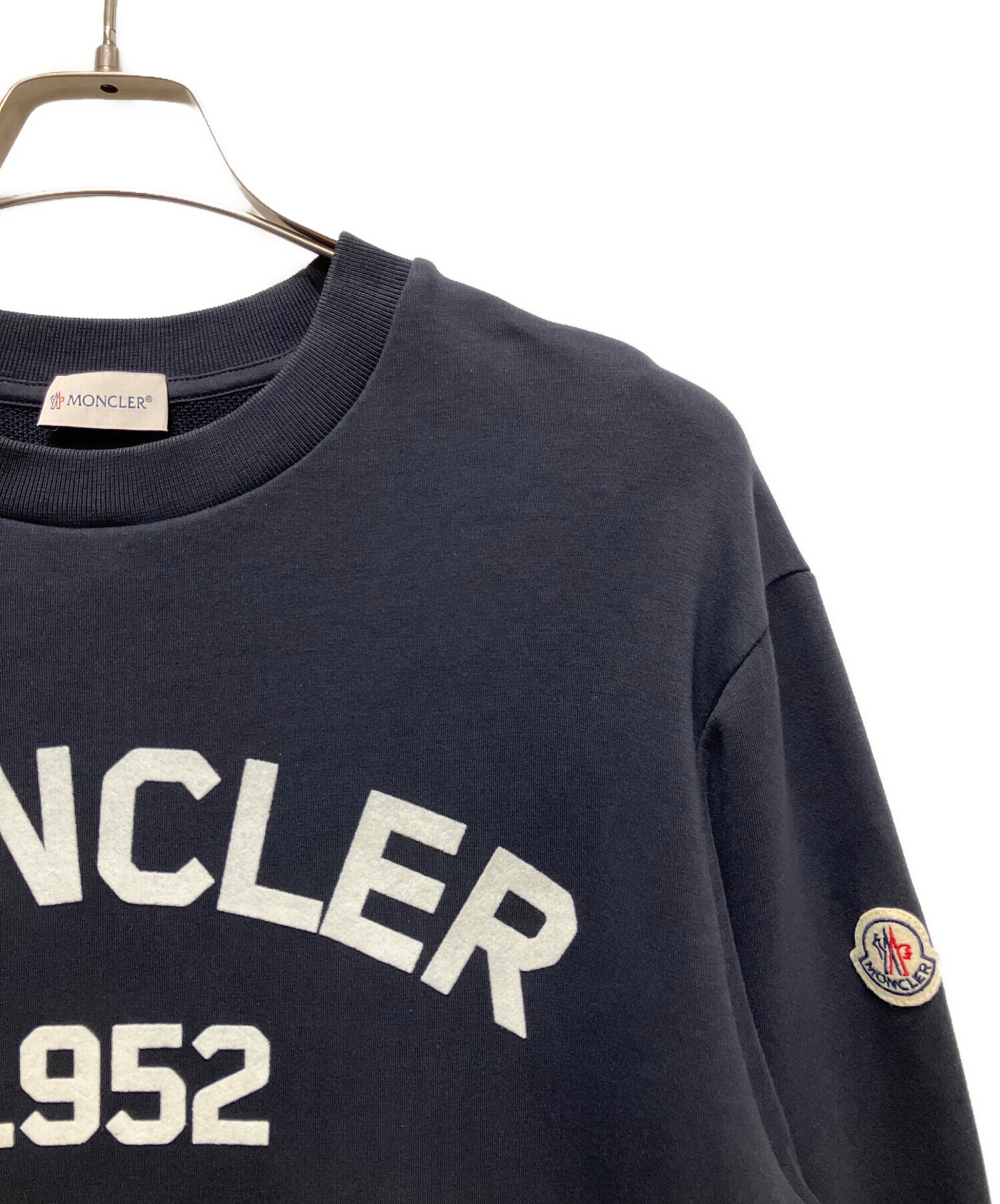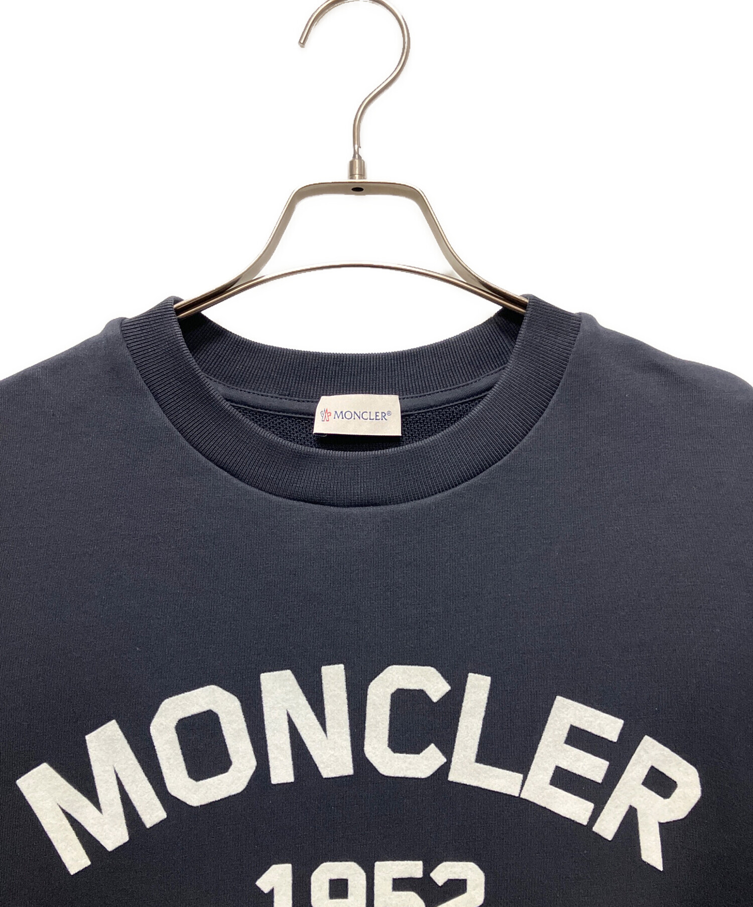 • MONCLER(モンクレール)MONCLER (モンクレール) Flocked Logo Cotton Sweatshiert/フロッキーロゴスウェット ネイビー サイズ:Lの古着・服飾アイテム 襟元アタリ有
