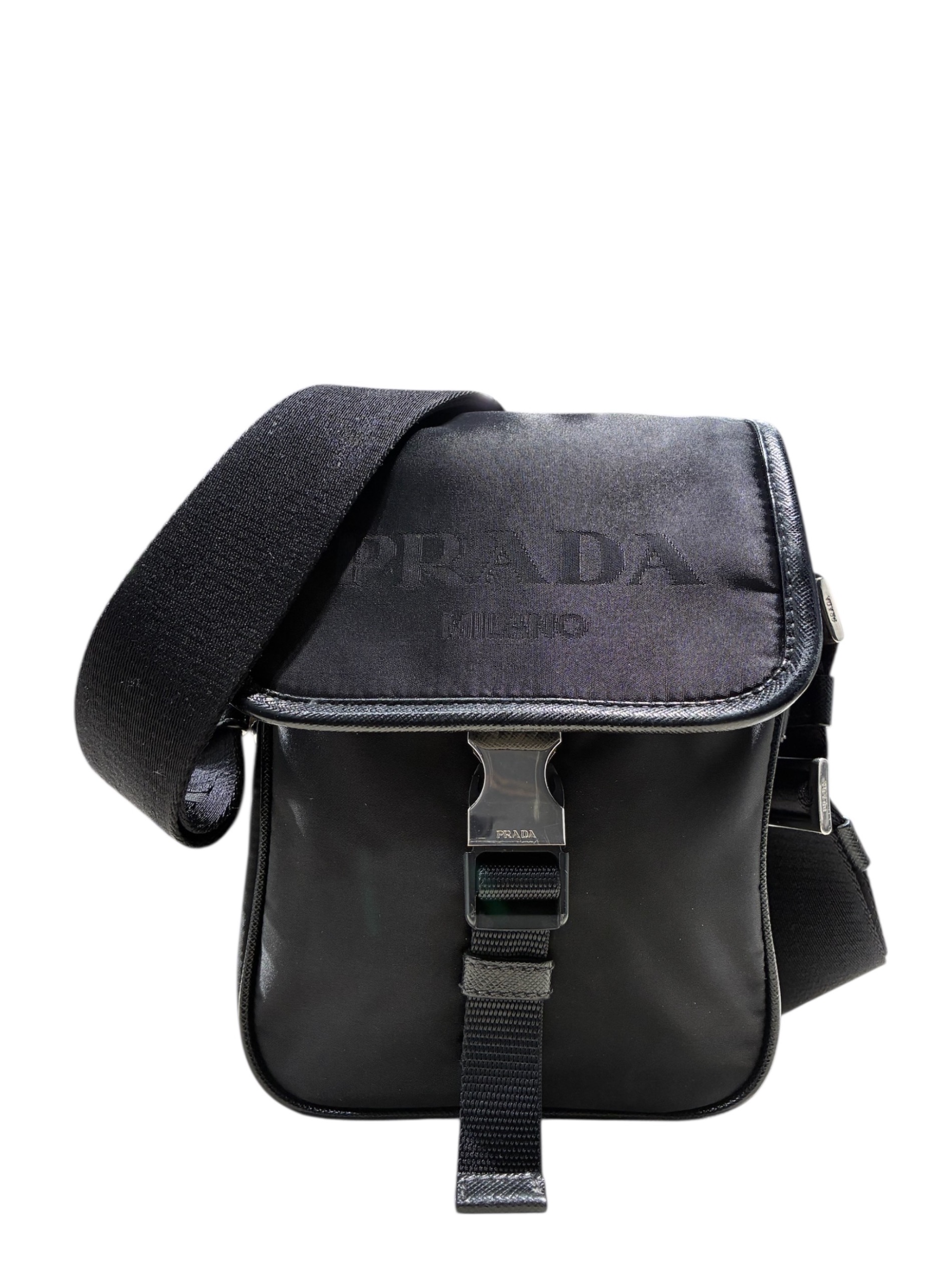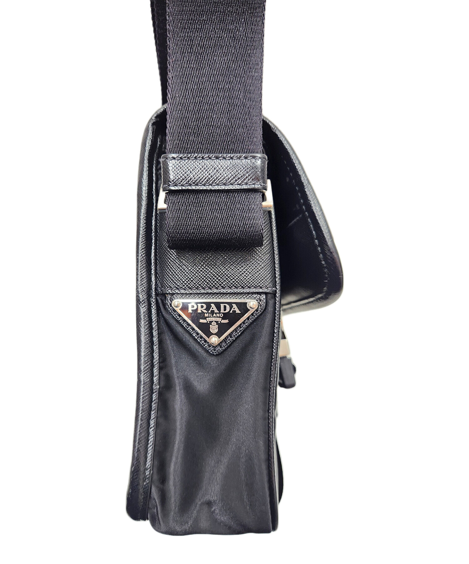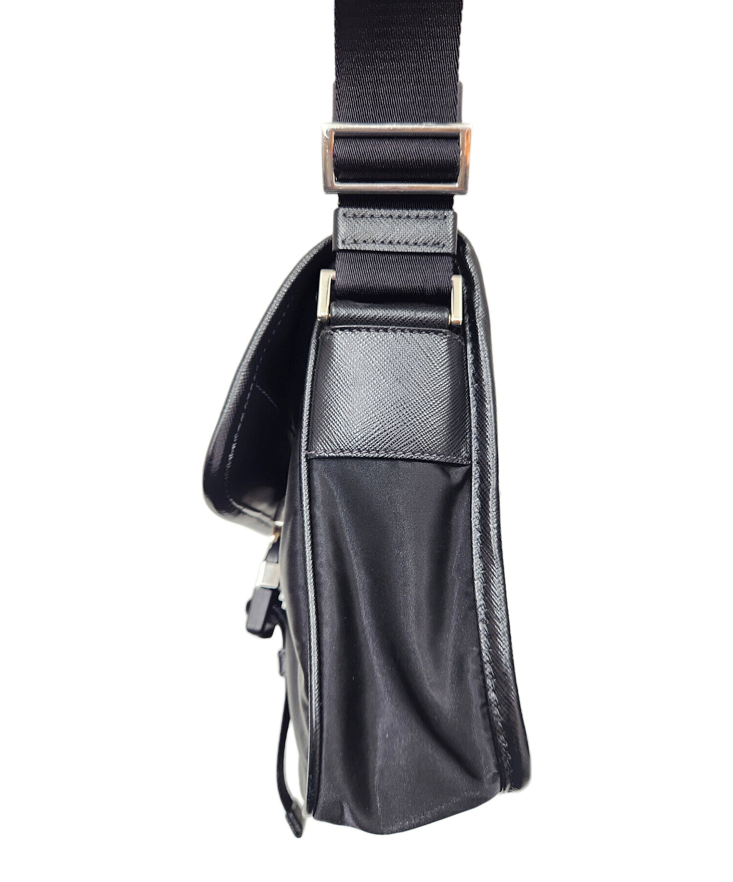 スタッフコメント PRADAのナイロンショルダーバッグ「2VD028」でございます。軽量で耐久性に優れたナイロン素材にサフィアーノレザーを組み合わせた、洗練されたデザインが魅力のボディバッグです。フロントのトライアングルロゴがアクセントになっており、コンパクトながらスマートフォンや財布など必需品をしっかり収納できるため、デイリーから旅行まで幅広く活躍します。