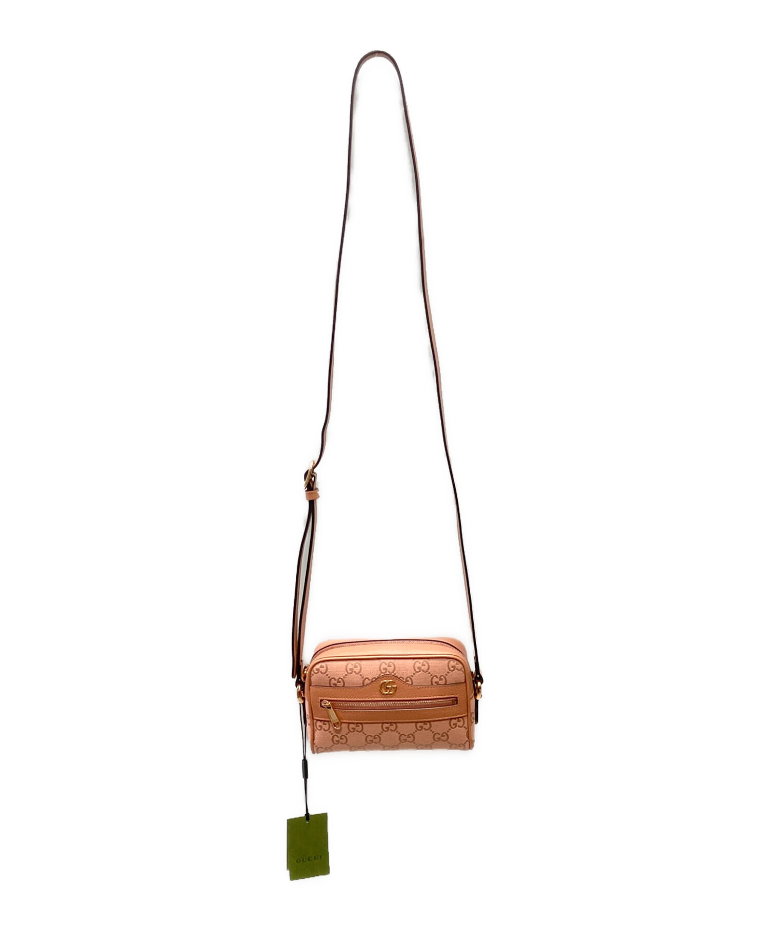 スタッフコメント 柔らかなピンクカラーが目を惹く、GUCCIのショルダーバッグです。コンパクトなサイズ感ながら三つ折り財部やスマートフォン、小さなポーチなど必要な荷物がしっかり収まる、使い勝手の良いモデルです。コーディネートの差し色としても活躍する、上品で洗練されたデザインが特徴です。
