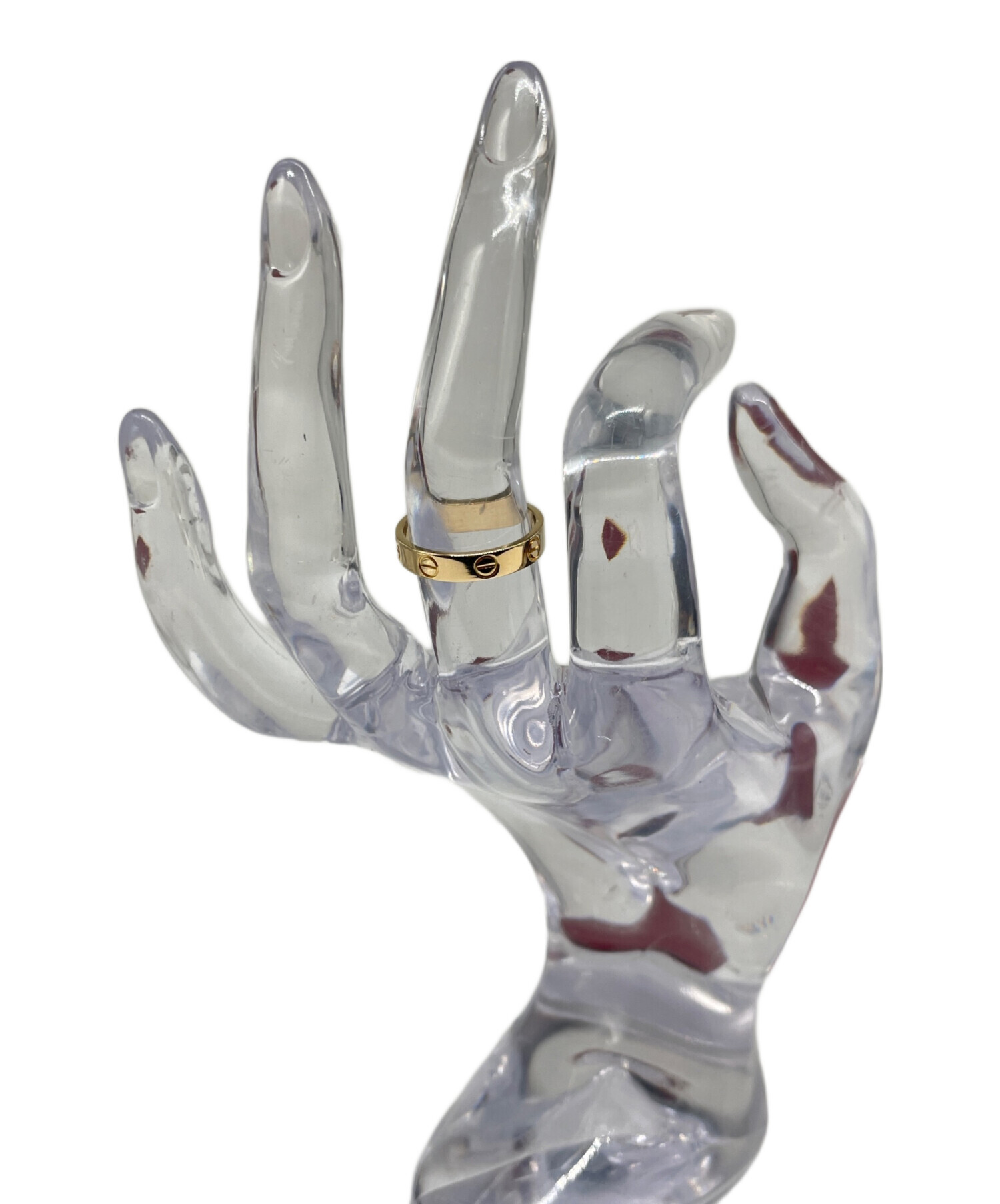| スタッフコメント | カルティエのLOVEコレクションのひとつであるミニラブリングです。通常よりも細く、華奢な印象が感じられます。同じコレクションのラブリングや細身なリングと重ねることでよりアクセントになります。 |