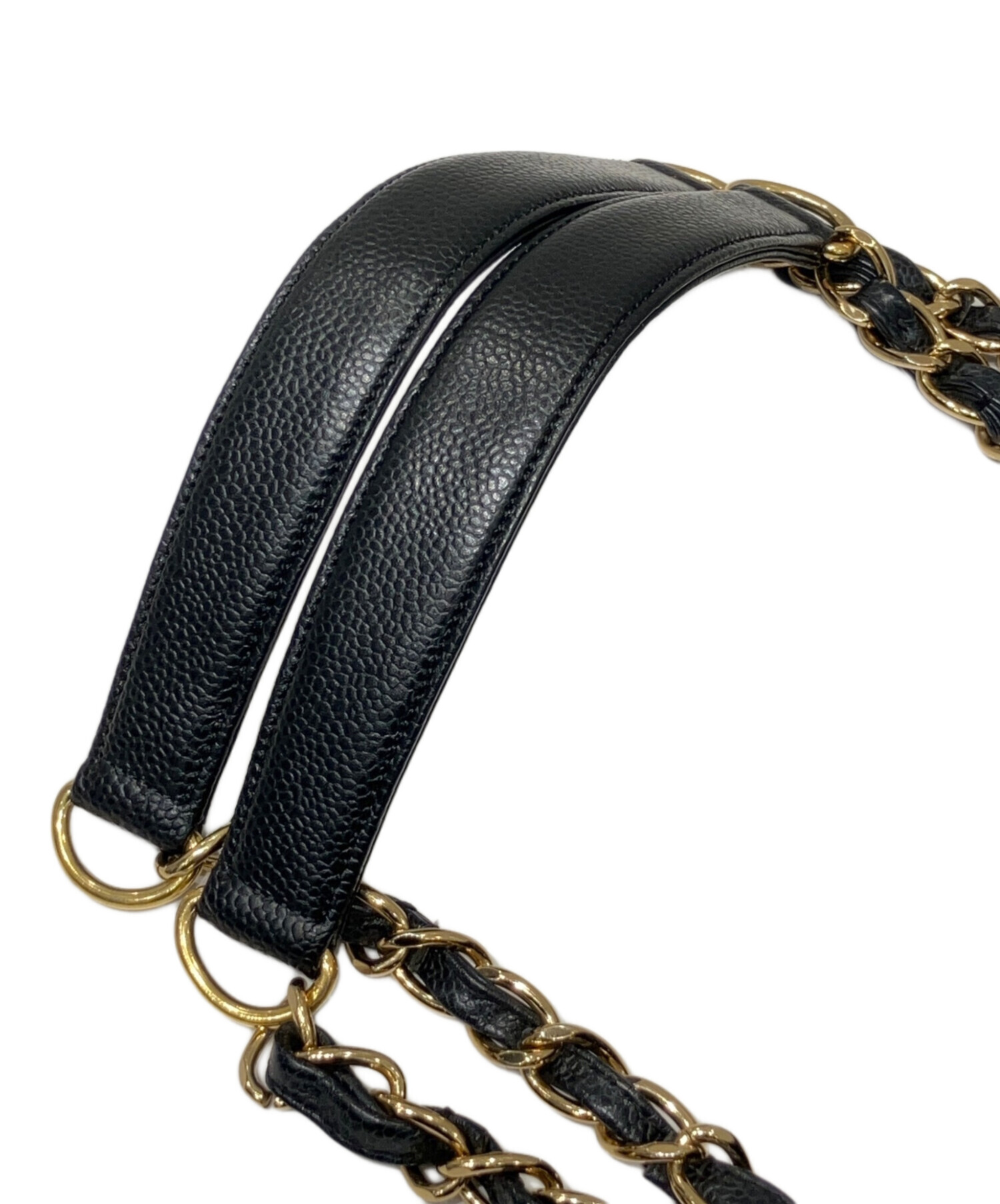 | スタッフコメント | シャネルのキャビアスキンを使用したPSTトートバッグです。A4サイズが収まる収納力と、内側ファスナーポケットで実用性も抜群です。ココマークステッチが上品に映えるデザインで、幅広いコーディネートにマッチし、通勤や日常使いに最適なモデルです。 |
