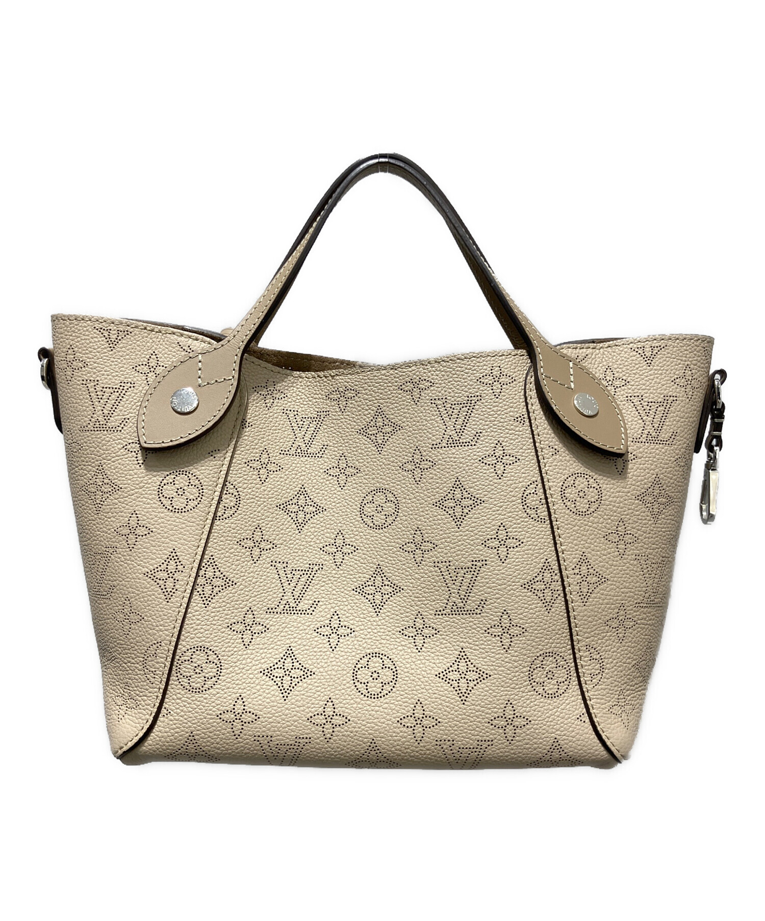 | スタッフコメント | パンチング表現されたモノグラム総柄が特徴的なモノグラムマヒナのトートバッグです。内部には小物などを収納できる取り外し可能なポーチが付属しています。ベージュ系の柔らかな印象のカラーリングで幅広いコーディネートにマッチします。 |