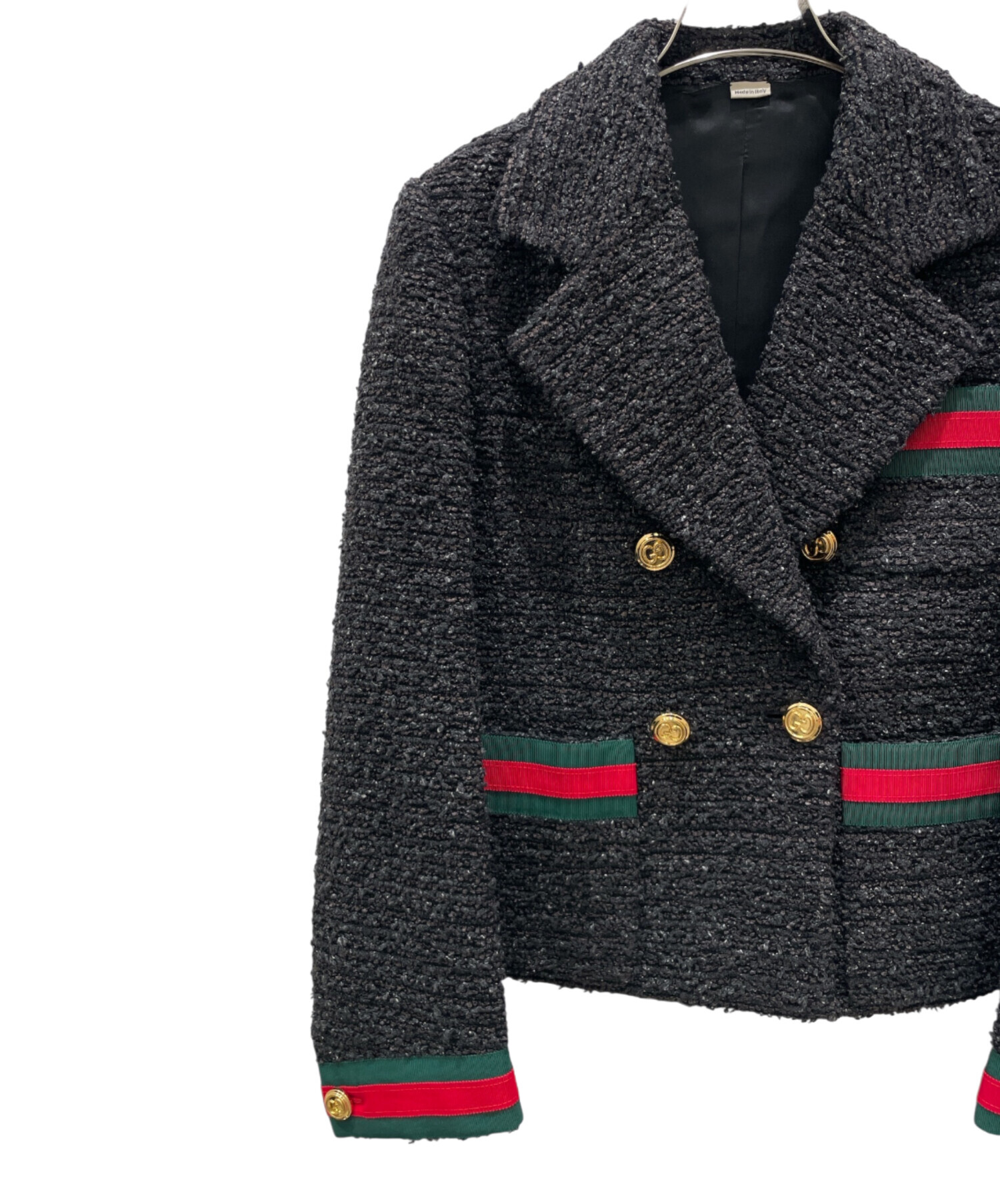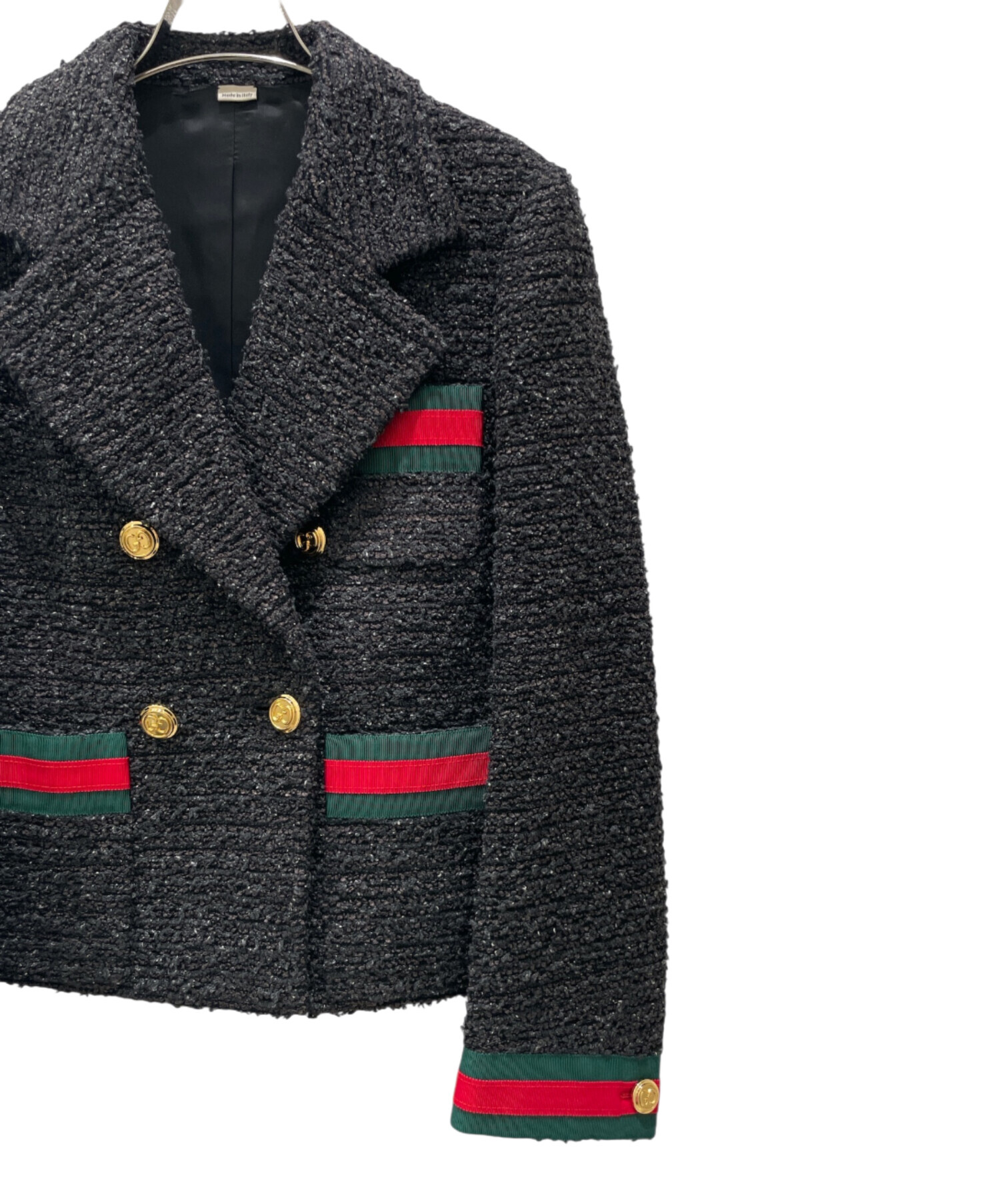 | スタッフコメント | GUCCIのツイードジャケットでございます。ブランドを象徴するシェリーラインが配されたエレガントなデザインが魅力です。程よい着心地でフィット感も良く、上品なシルエットを演出します。フォーマルからカジュアルまで幅広いシーンで活躍し、大人の洗練スタイルを完成させる一着でございます。 |