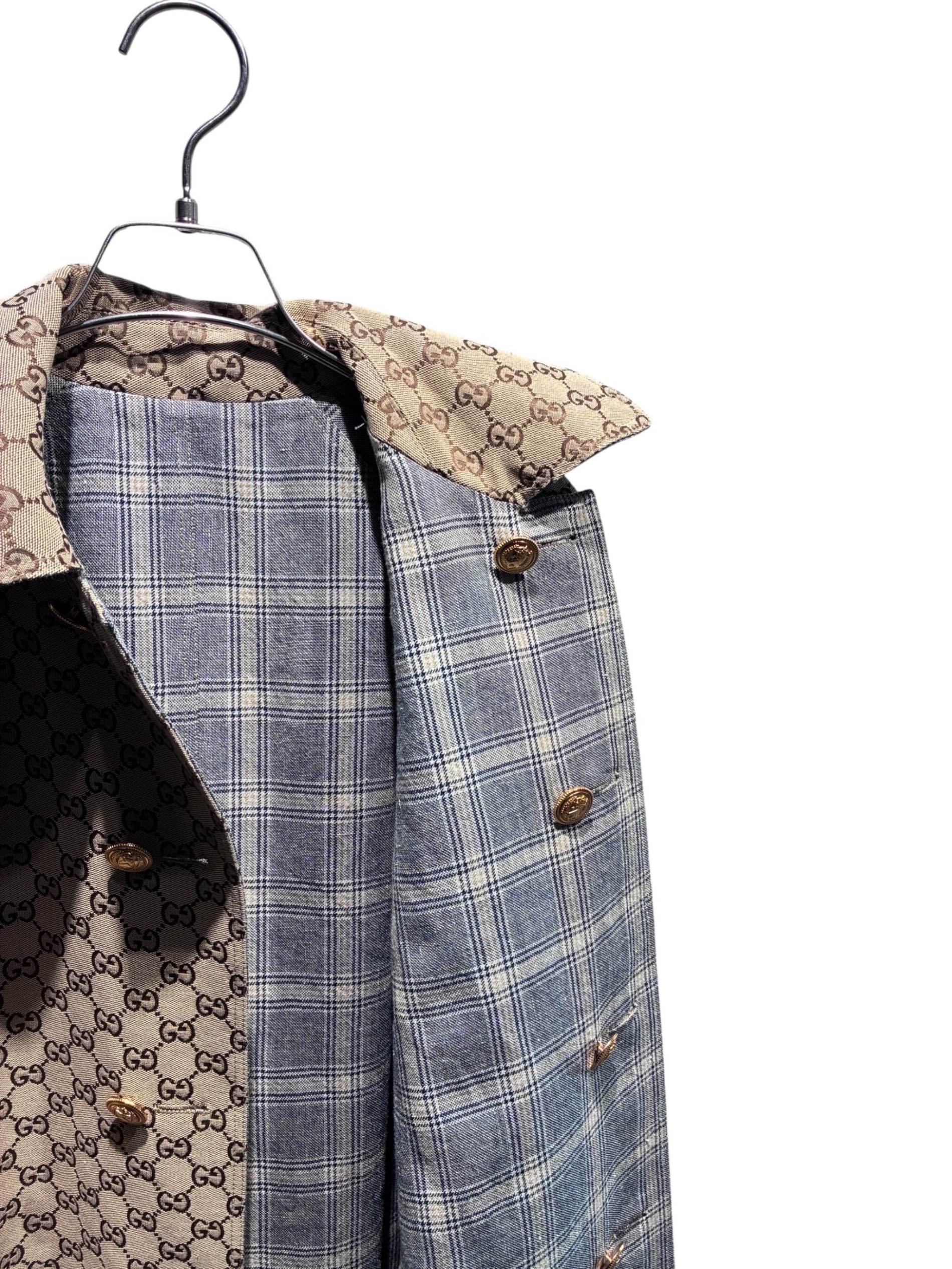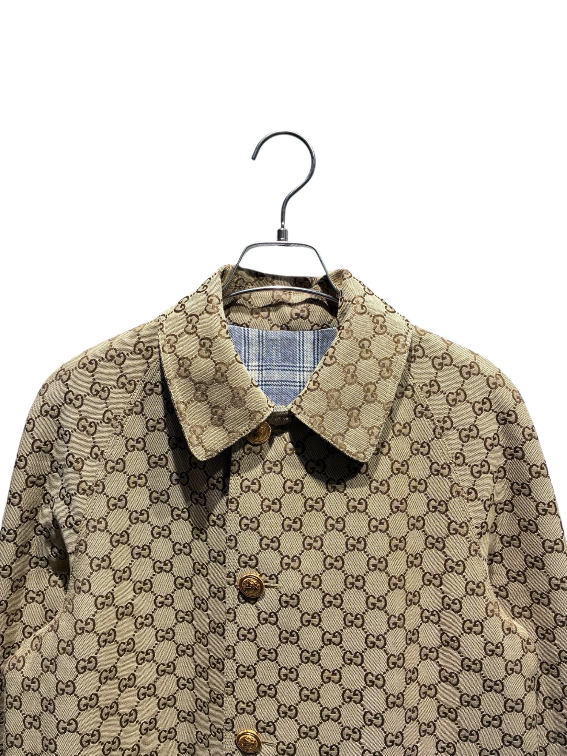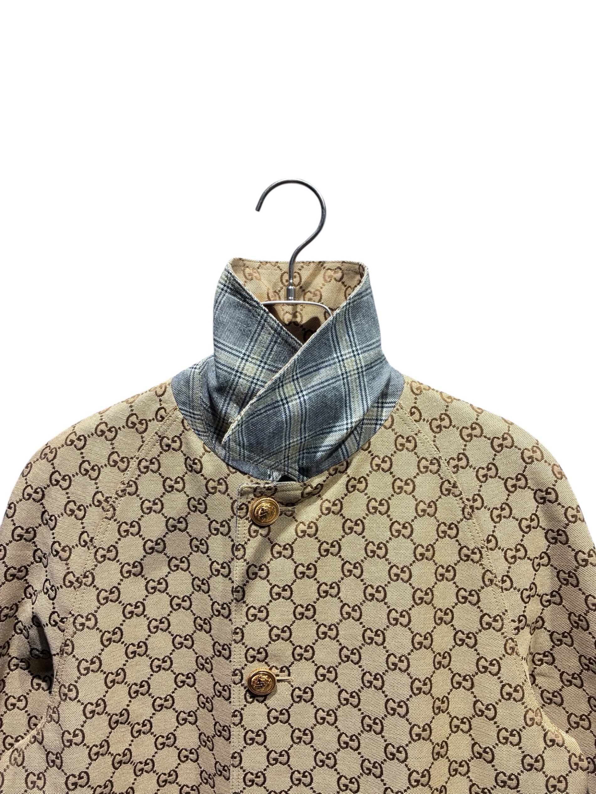 スタッフコメント GUCCI(グッチ)のステンカラーコート。GG柄×チェックのリバーシブル仕様で着こなし自在。軽やかな着用感と端正なシルエットで、通勤から外出まで幅広く活躍するコート。
