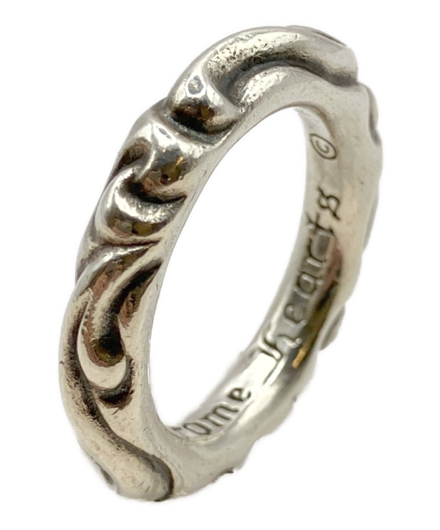 スタッフコメント スクロールバンドリングは、ブランドを象徴するスクロール(唐草)モチーフをリング全体にあしらった、重厚感のあるシルバーアクセサリーです。素材にはSILVER925を使用しており、クロムハーツ特有の重みと高級感のある質感が魅力です。