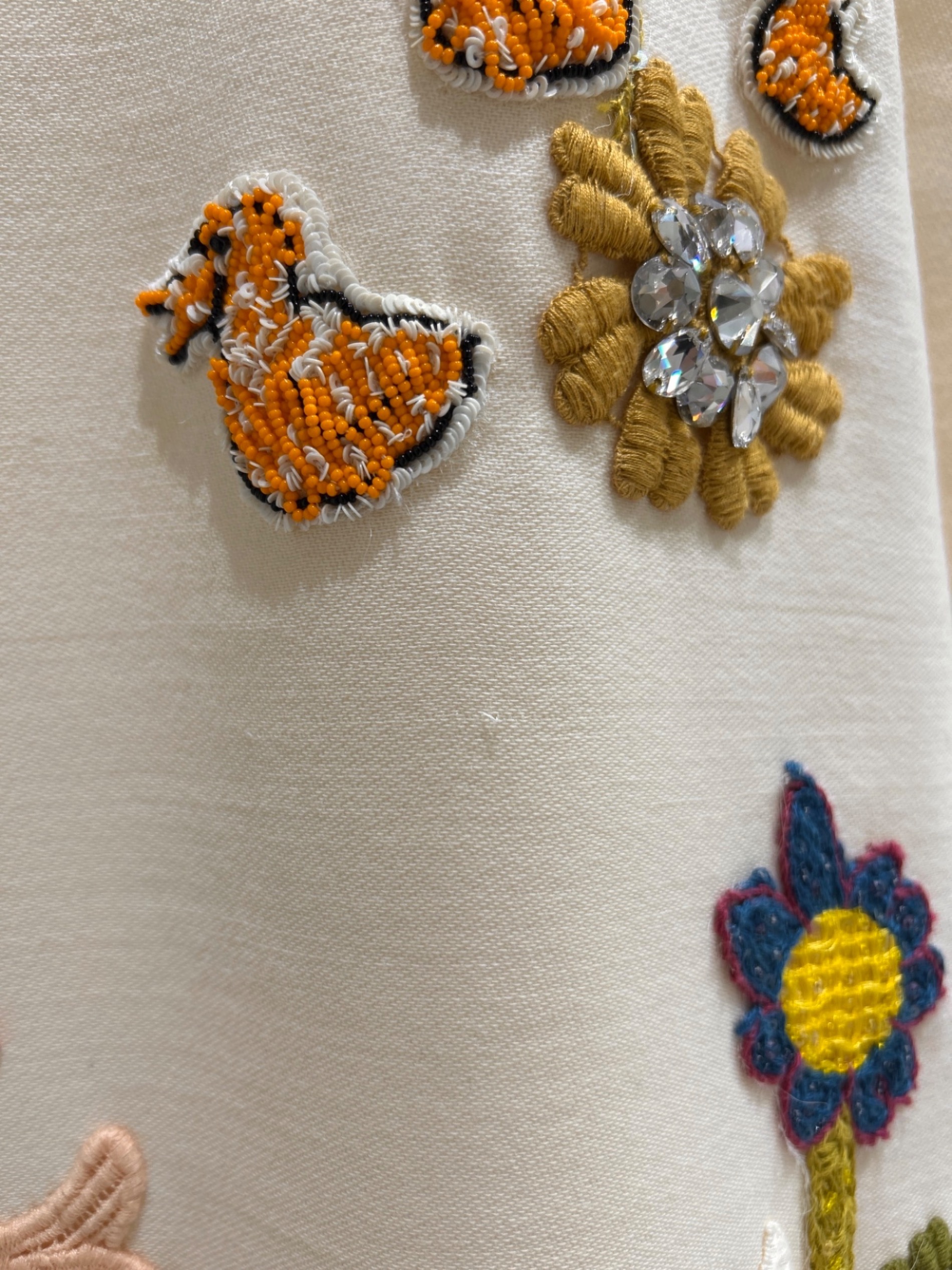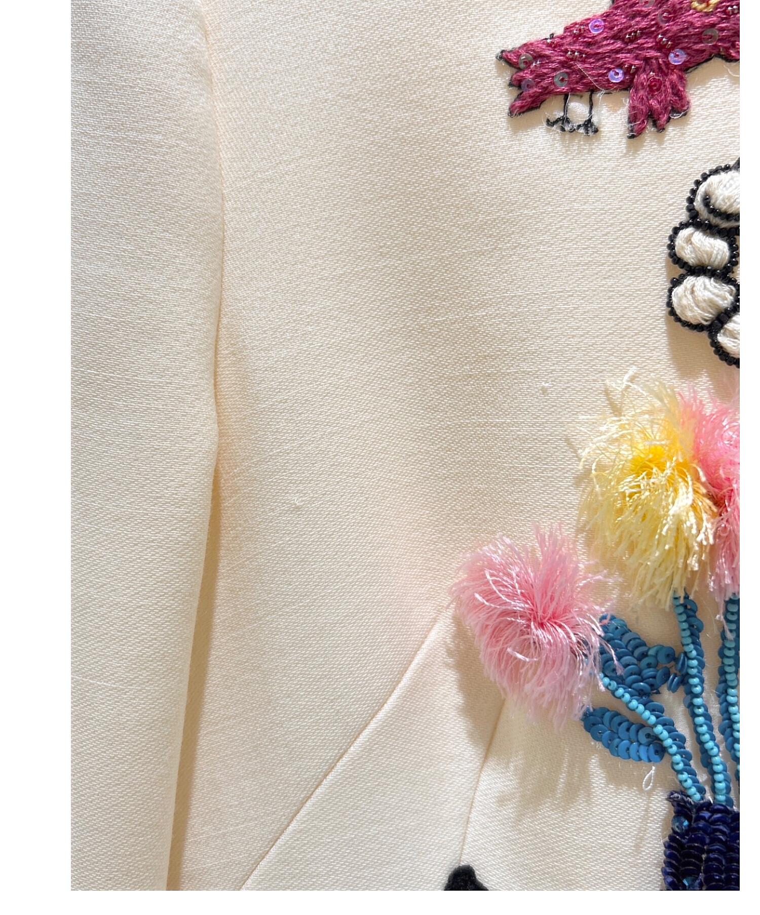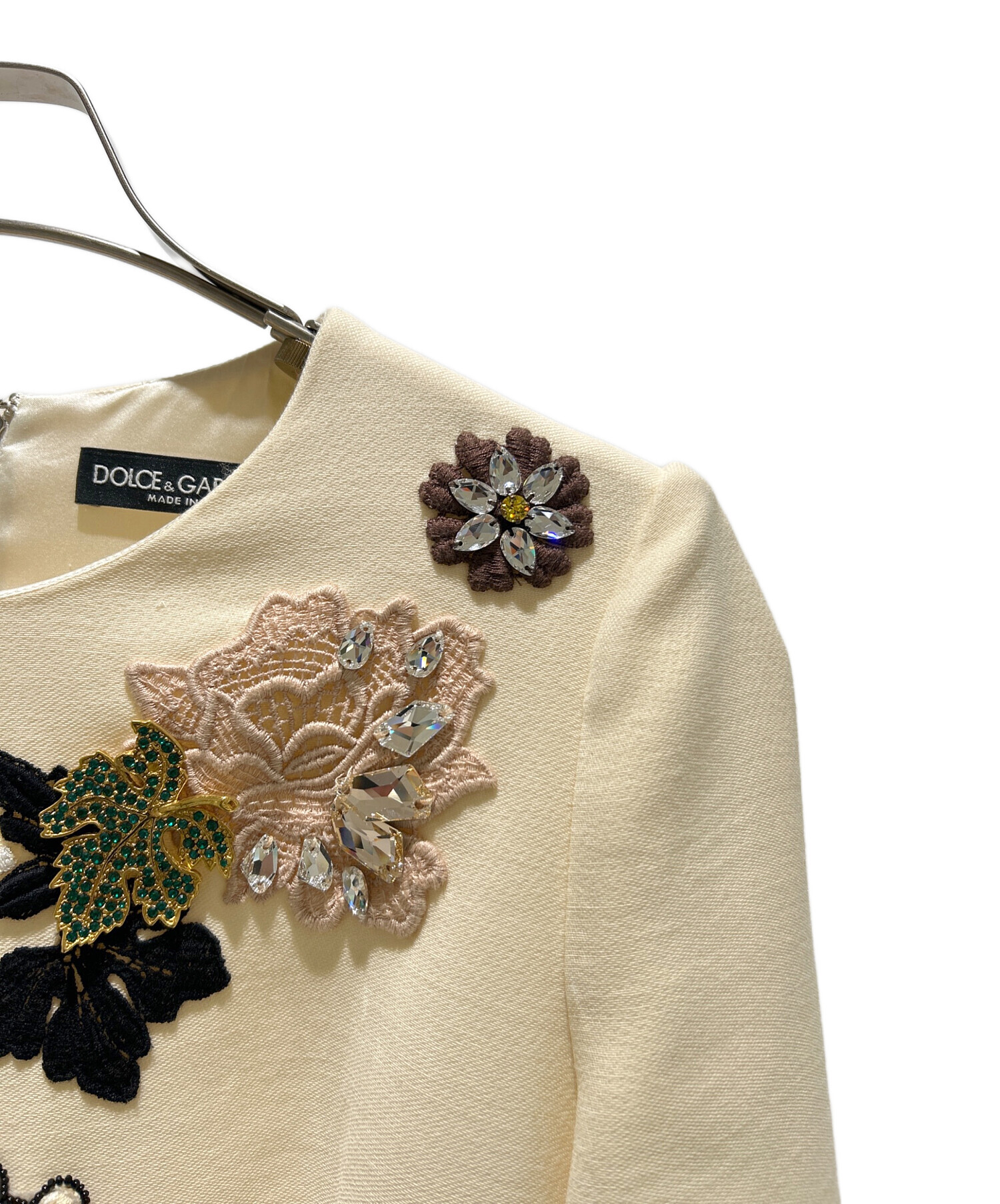 | 素材 | 表地:ウール100% 裏地:シルク94%、エラスタン6% 装飾:ポリエステル25%、クリスタル20%、プラスチック15%、コットン15%、グラス10%、真鍮10%、ビスコース5% |