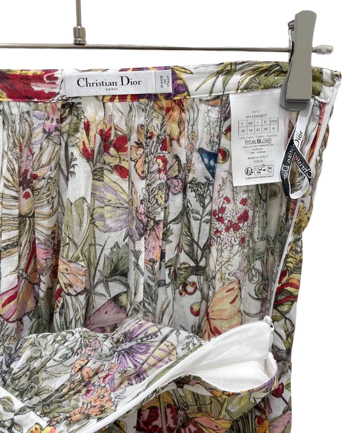 スタッフコメント Christian Diorの総柄ロングスカートでございます。ブランドを象徴するトワルドジュイ調の繊細なプリントが目を引く、上品で存在感のある一着でございます。軽やかな素材感と美しく広がるシルエットが、動きに合わせて優雅な印象を演出いたします。シンプルなトップスと合わせるだけで洗練されたスタイリングが完成します。