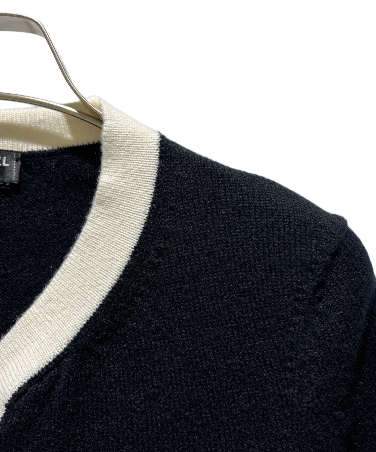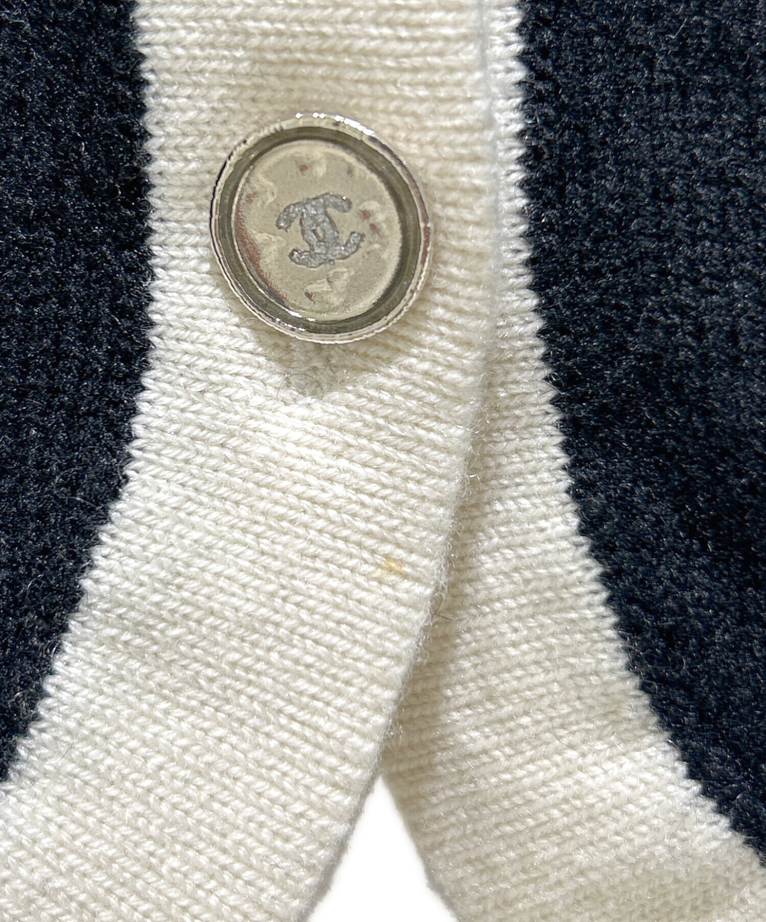 • CHANEL(シャネル)CHANEL (シャネル) P78 ココマーク カシミヤ トリムニットカーディガン/Coco Mark Cashmere Trim Knit Cardigan/P78954K11387 ホワイト×ブラック サイズ:34の古着・服飾アイテム トリム部分に小シミ有