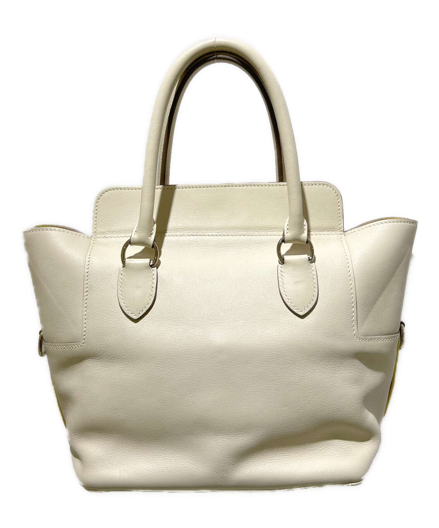 | スタッフコメント | ボディのチョークのような柔らかみのあるアイボリーカラーが魅力のエルメス《ツールボックス20》でございます。マチがしっかりとあり、開口部が大きく開くため、荷物の出し入れのしやすさが魅力となっています。インナーカラーには鮮やかなイエローカラーが使用されており、コーディネートのアクセントにもおすすめのバッグでございます。 |