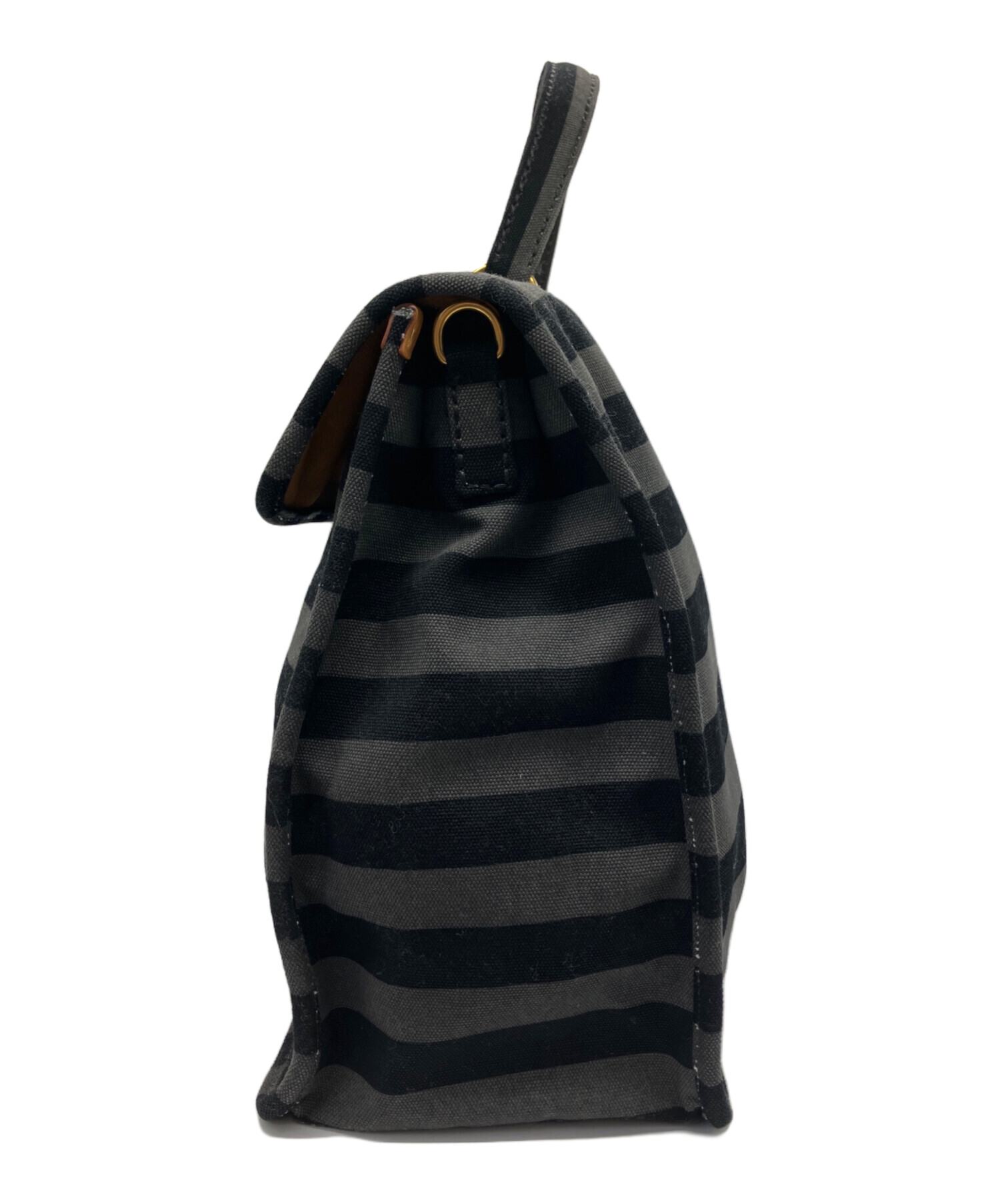 • PRADA(プラダ)PRADA (プラダ) 2WAYキャンバスバッグ カナパキャンバス ボーダー ブラック×グレーの古着・服飾アイテム 金具にダメージ有