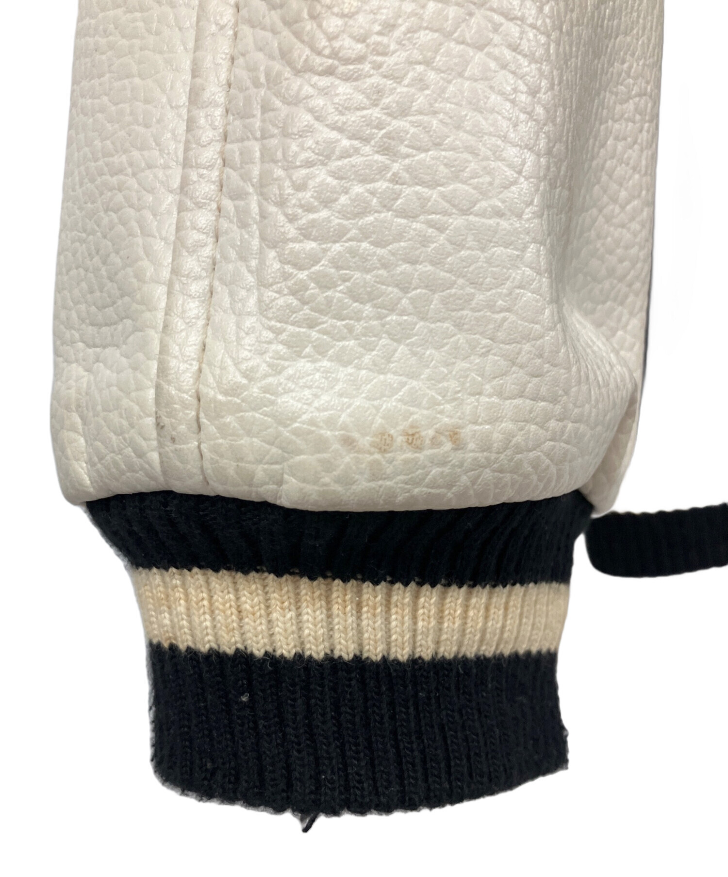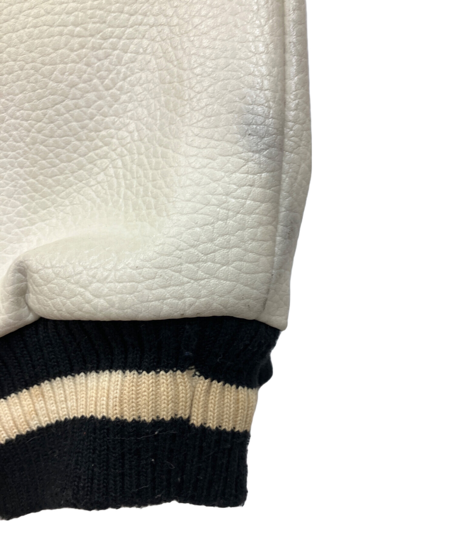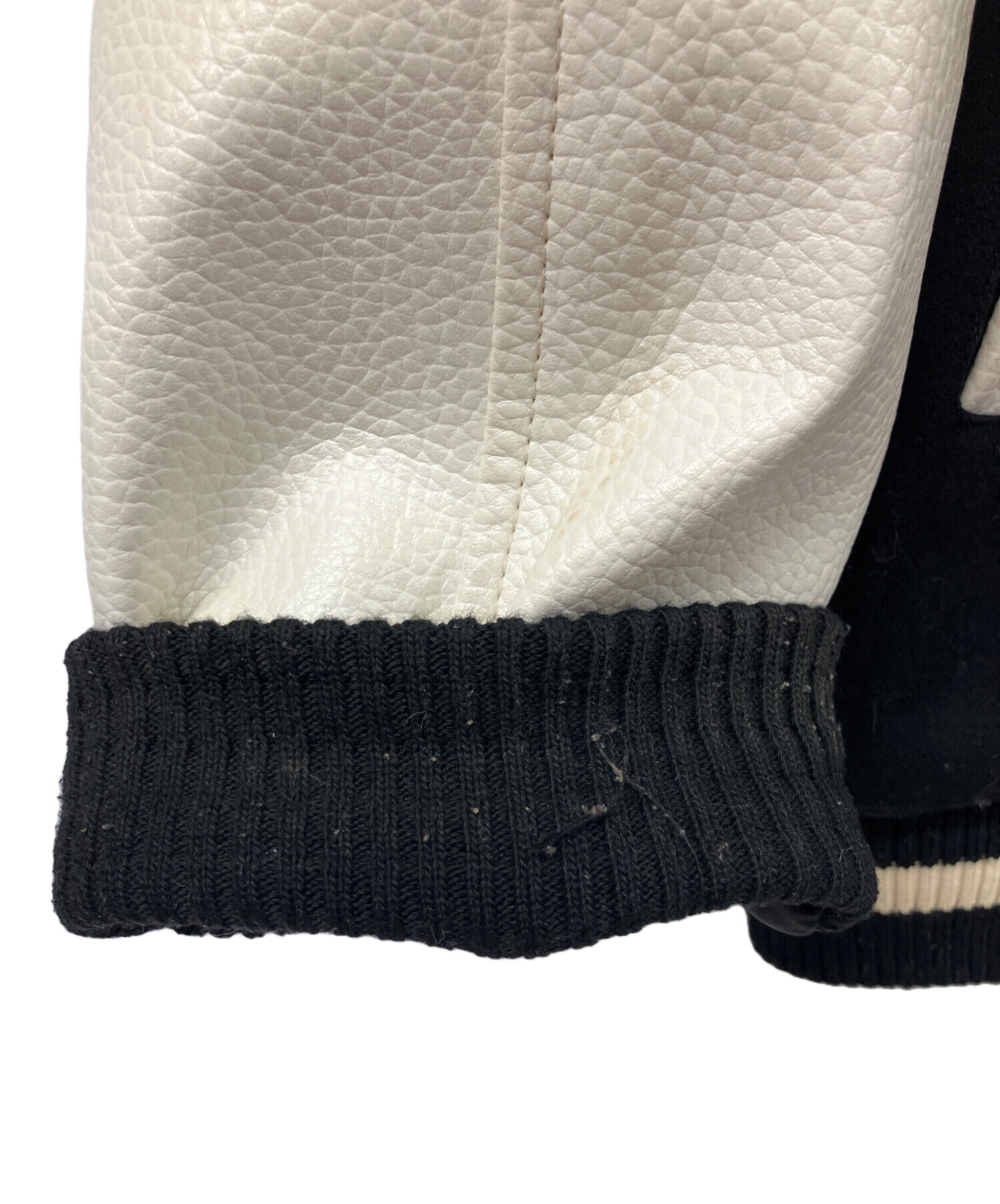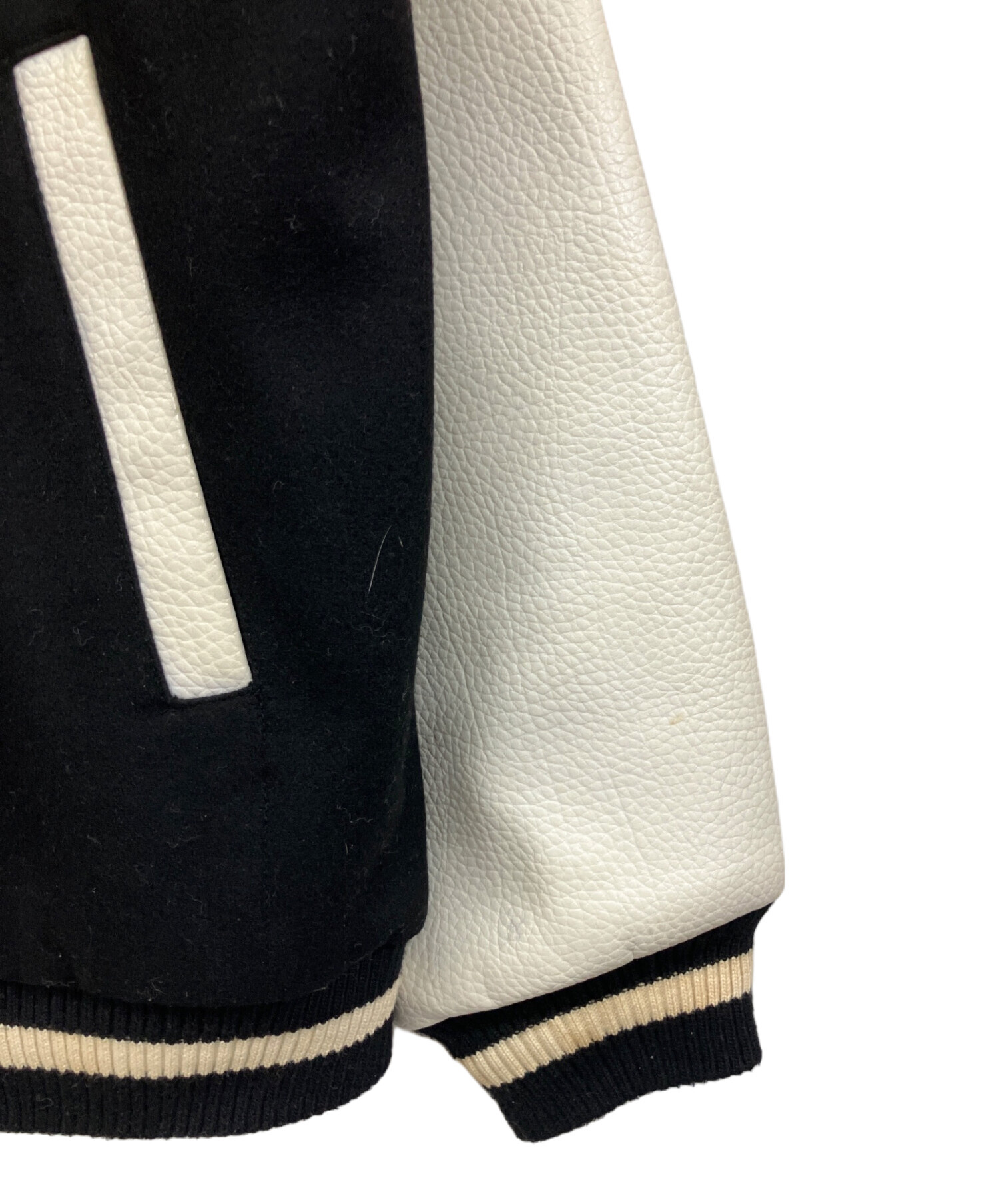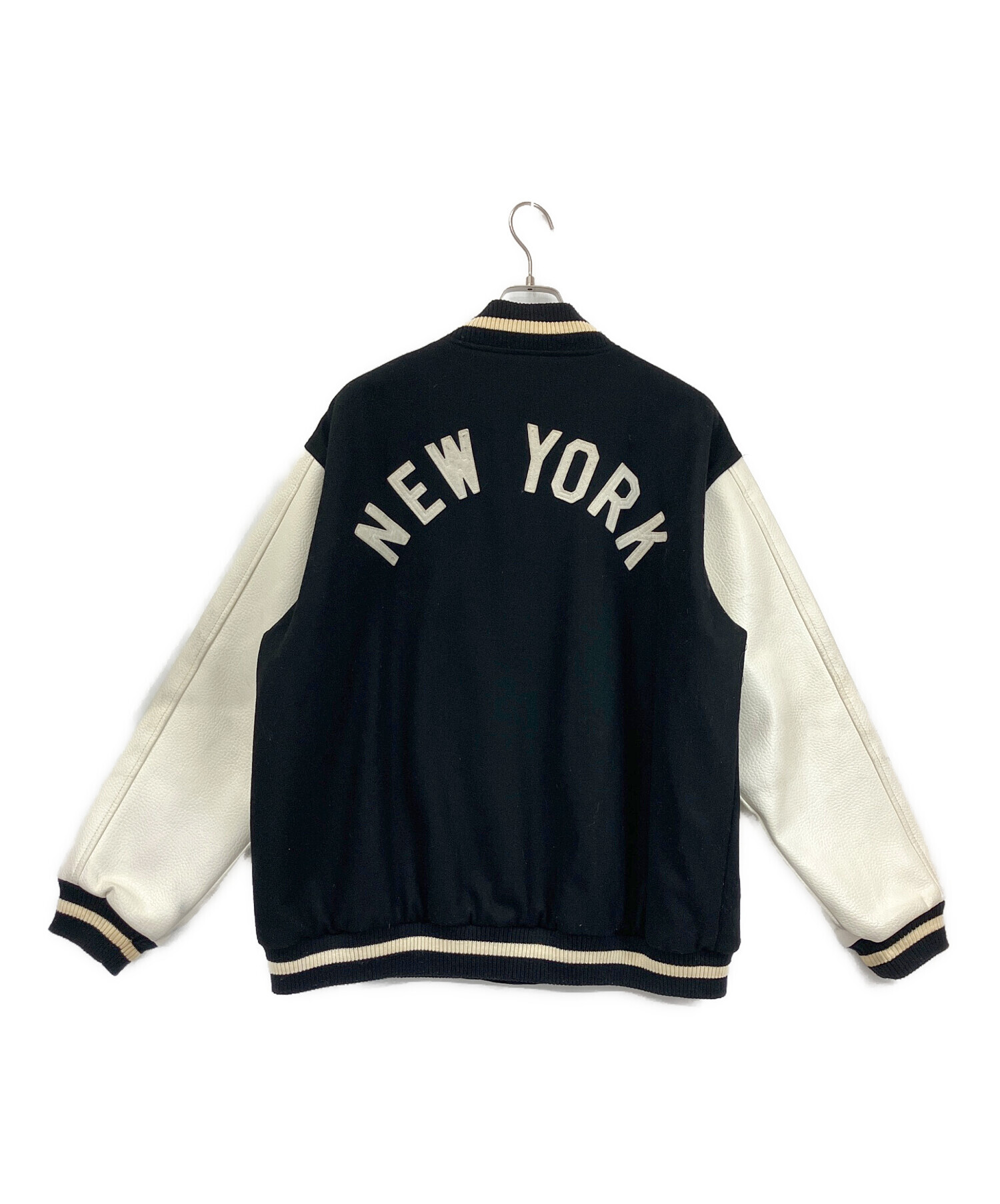 • EMPIRE(エンパイア)EMPIRE (エンパイア) 袖革スタジャン NEWYORK YANKEES ブラック×ホワイト サイズ:XLの古着・服飾アイテム リブ部分に毛玉有