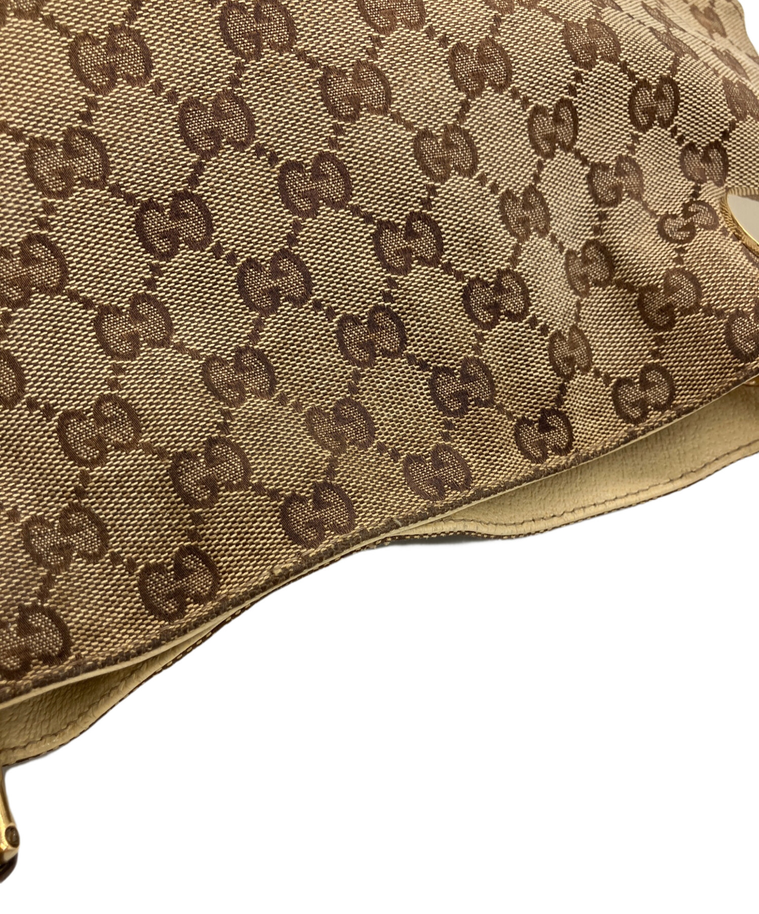 • GUCCI(グッチ)GUCCI (グッチ) GGキャンバストートバッグ アイボリーの古着・服飾アイテム 底面中央にヨゴレ有