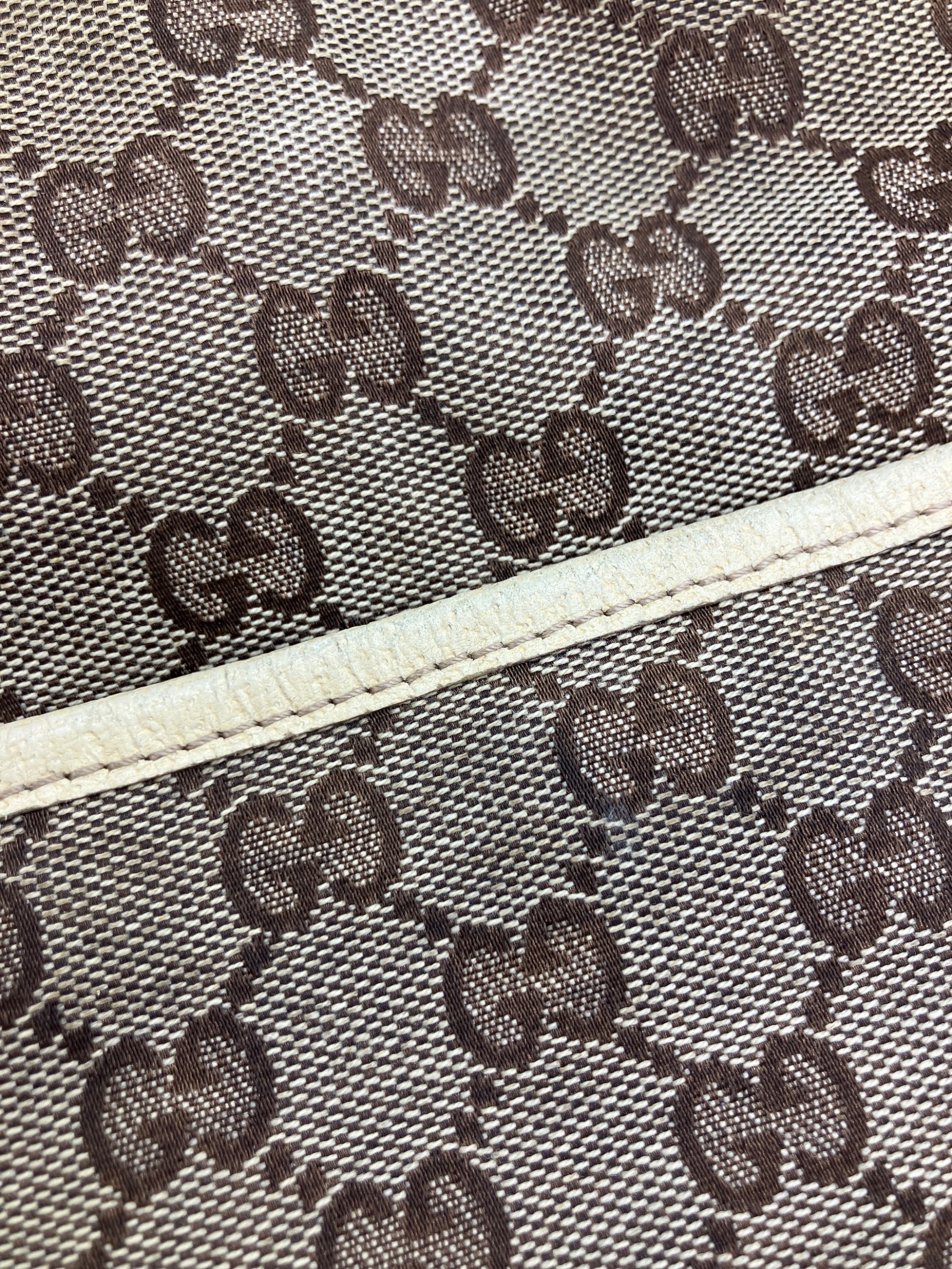 • GUCCI(グッチ)GUCCI (グッチ) GGキャンバストートバッグ アイボリーの古着・服飾アイテム 外ポケット入口にコバ割れ有