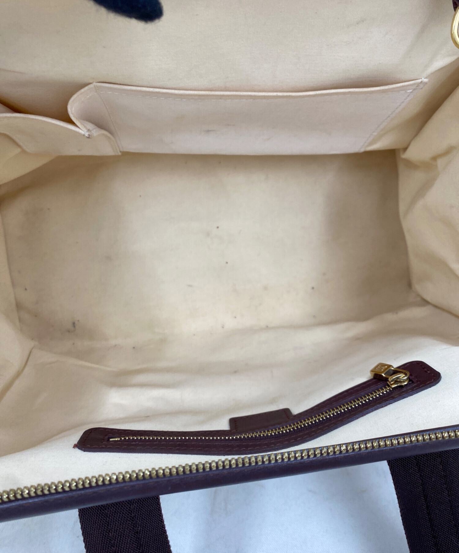 | 状態 | ・表面数か所シミ有 ・ハンドルダメージ有 ・4つ角スレ有 ・レザーパーツダメージ有 ・金具塗装ハゲ、スレ有 ・内部ヨゴレ有 こちらの商品は中古品の為、使用に伴いますキズ、汚れが各所に見受けられます。店頭にて展示販売を行っている為、記載に無い細かなキズ、汚れが見受けられる場合がございます。 |