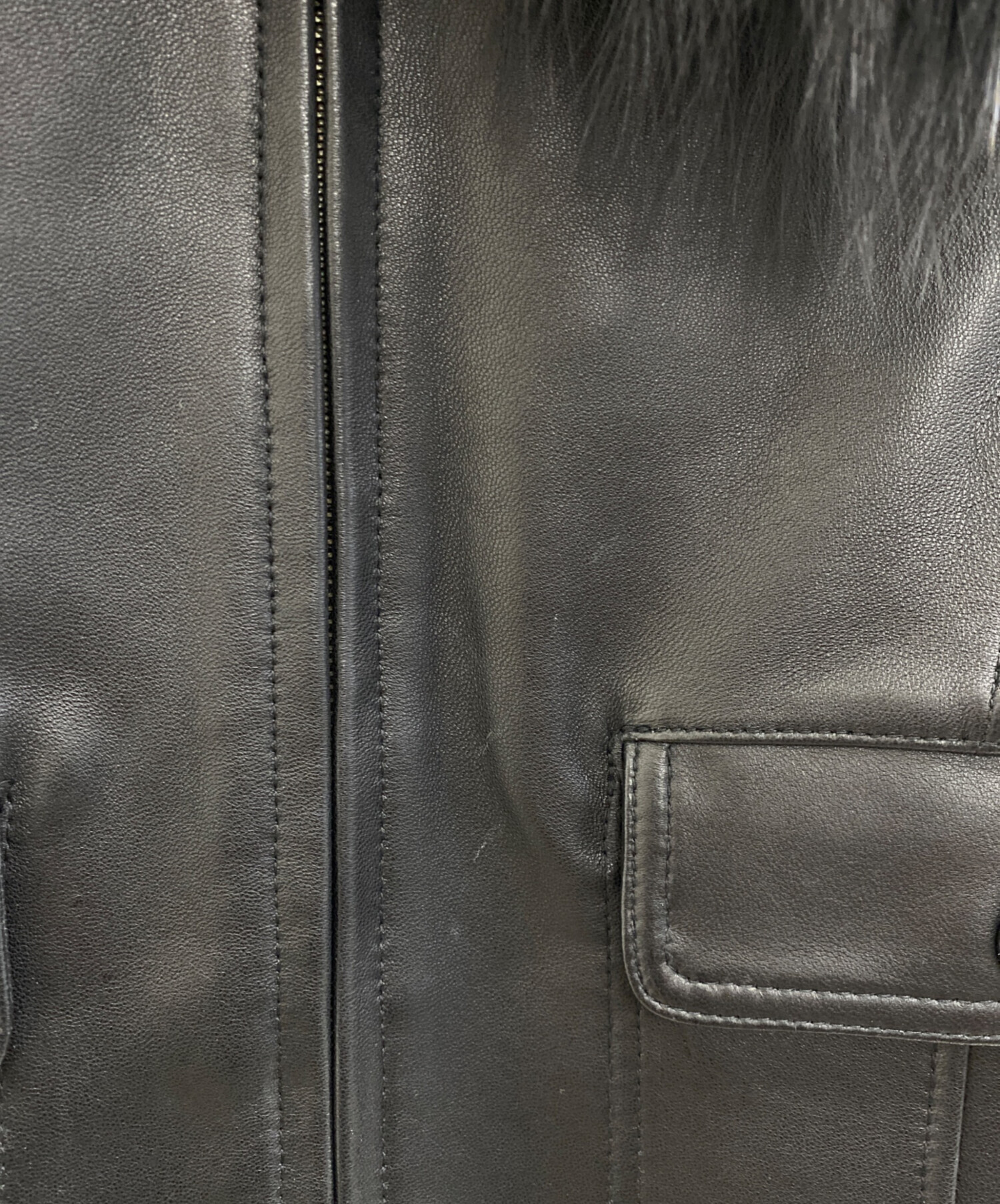 | 素材 | 表地 羊革 身頃裏 ポリエステル 88% ポリウレタン 12% 袖裏 ポリエステル 100% 別布/背裏 綿 95% ポリウレタン 5% 別布/ファー,ポケット部分 綿 100% リブ タヌキ アクリル 63% 毛 22% ポリエステル 12% ポリウレタン 2% |