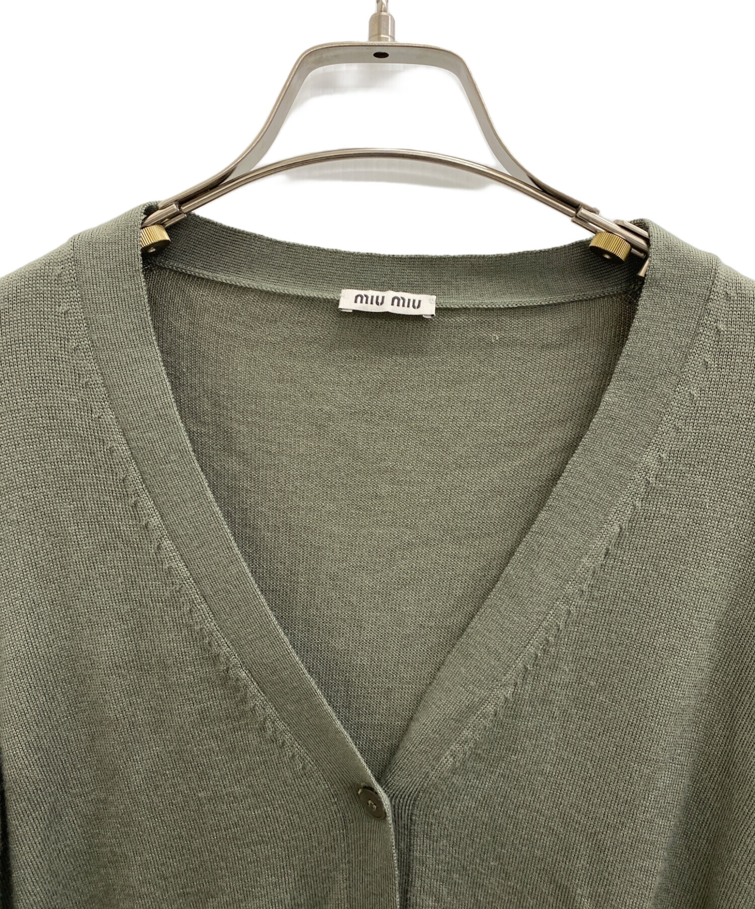 • MIU MIU(ミュウミュウ)MIU MIU (ミュウミュウ) 薄手カーディガン オリーブ サイズ:42の古着・服飾アイテム 毛羽立ち有