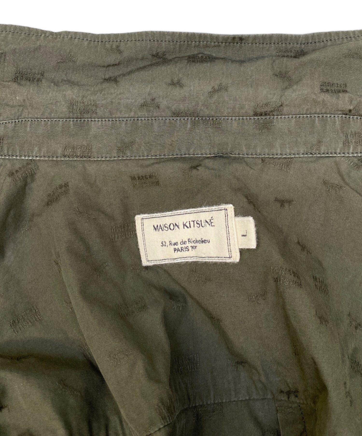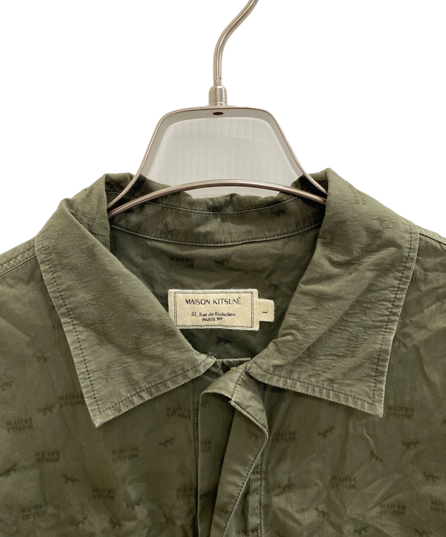 • maison kitsune(メゾンキツネ)MAISON KITSUNE (メゾンキツネ) シャツブルゾン グリーン サイズ:Lの古着・服飾アイテム 襟ヨゴレ有