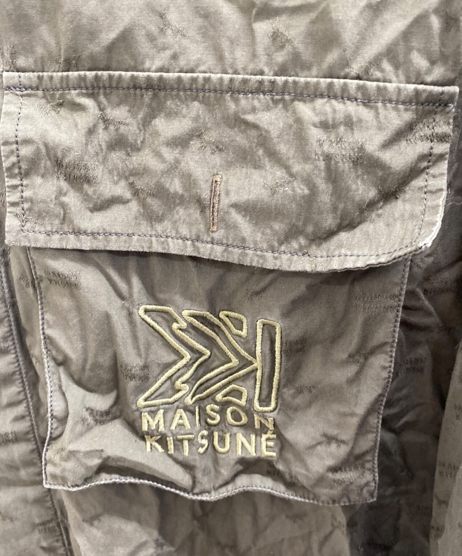 • maison kitsune(メゾンキツネ)MAISON KITSUNE (メゾンキツネ) シャツブルゾン グリーン サイズ:Lの古着・服飾アイテム 袖口スレ小有