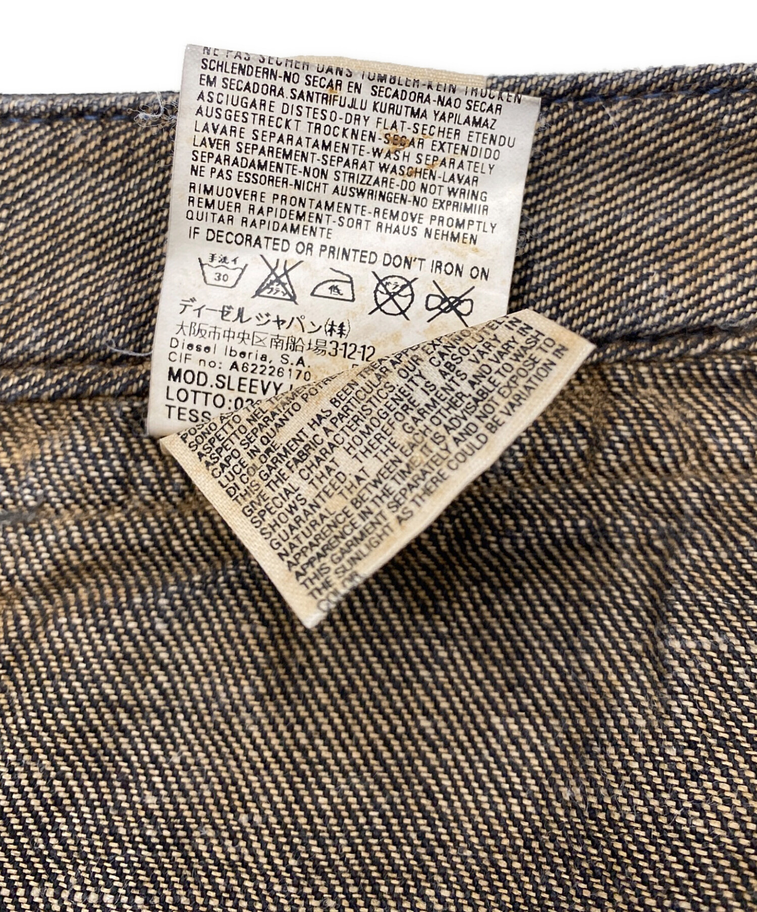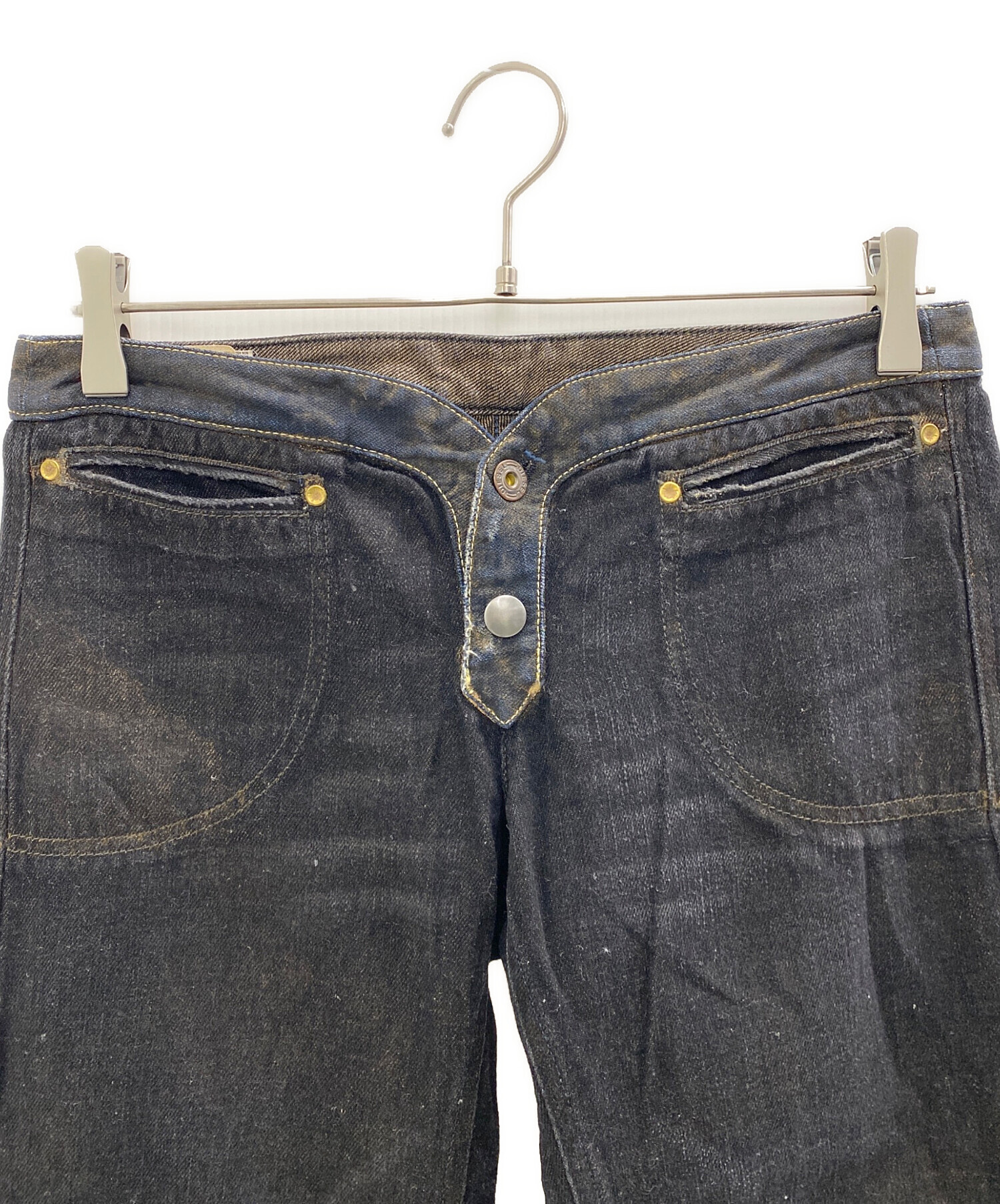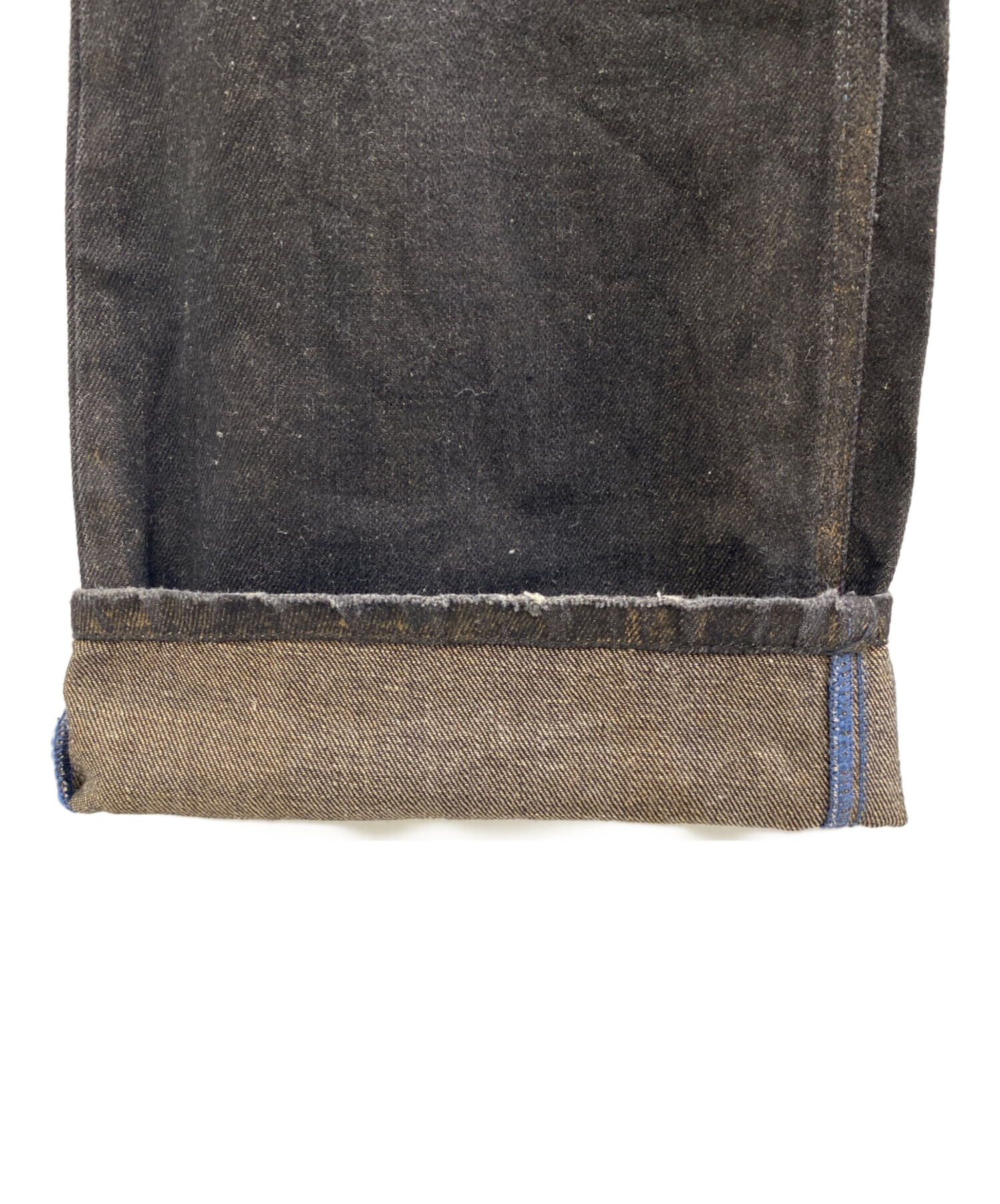 • DIESEL(ディーゼル)DIESEL (ディーゼル) デニムパンツ ブラウン×インディゴ サイズ:W27の古着・服飾アイテム 表面全体的に毛羽立ち、糸飛び出し有