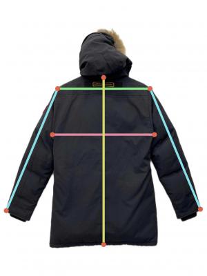 | 素材 | 表地: ポリエステル 85% 綿 15% 裏地: ナイロン 100% リブ部分: アクリル 98% ポリエステル 2% 中わた: ダウン 80% フェザー 20% 毛皮部分:コヨーテ |