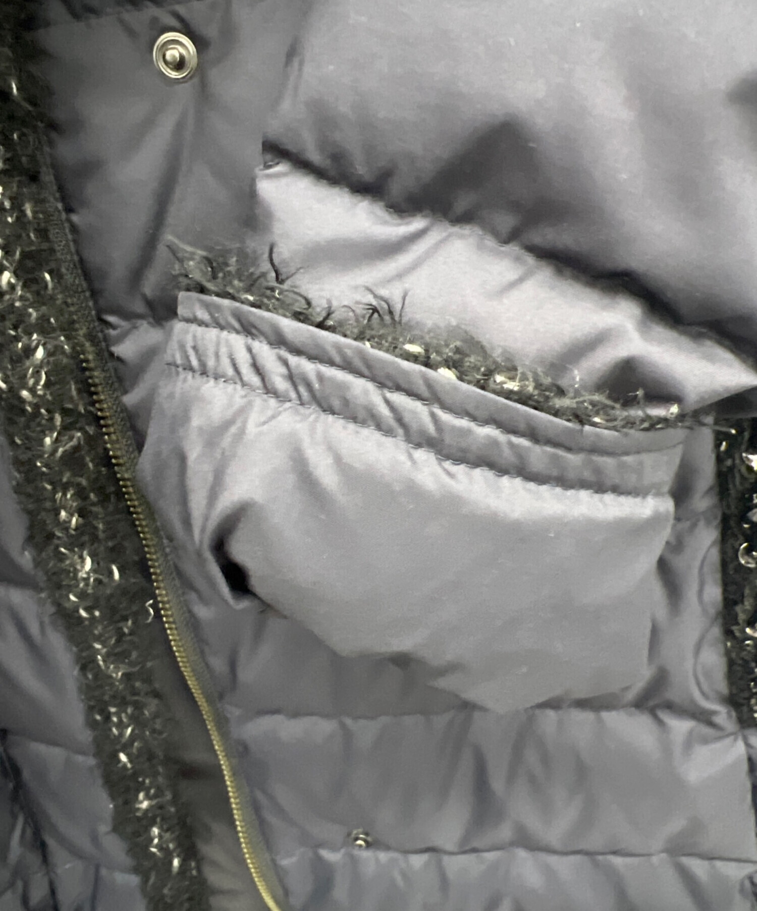 | 素材 | 表地/本体: ポリエステル 100% ブレード: ナイロン 44% アクリル 40% モヘヤ 11% 羊毛 5% レース:上糸 レーヨン100% 下糸 ポリエステル100% 中わた:ダウン90% フェザー10% 裏地:複合繊維 (ポリエステル ) |