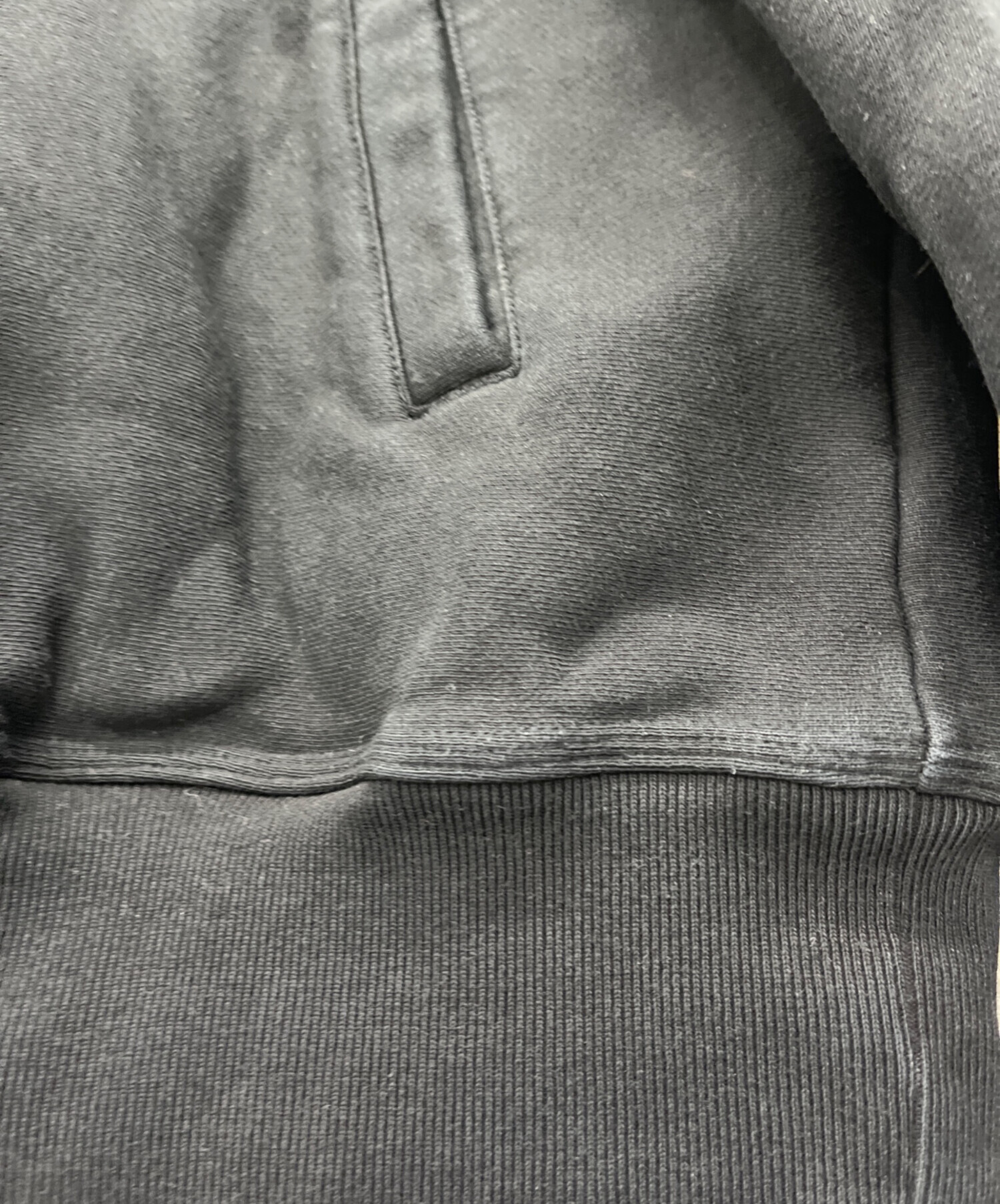 • stussy(ステューシー)stussy (ステューシー) ハーフジップスウェット ブラック サイズ:Mの古着・服飾アイテム 袖部分色落ち、ヨゴレ有