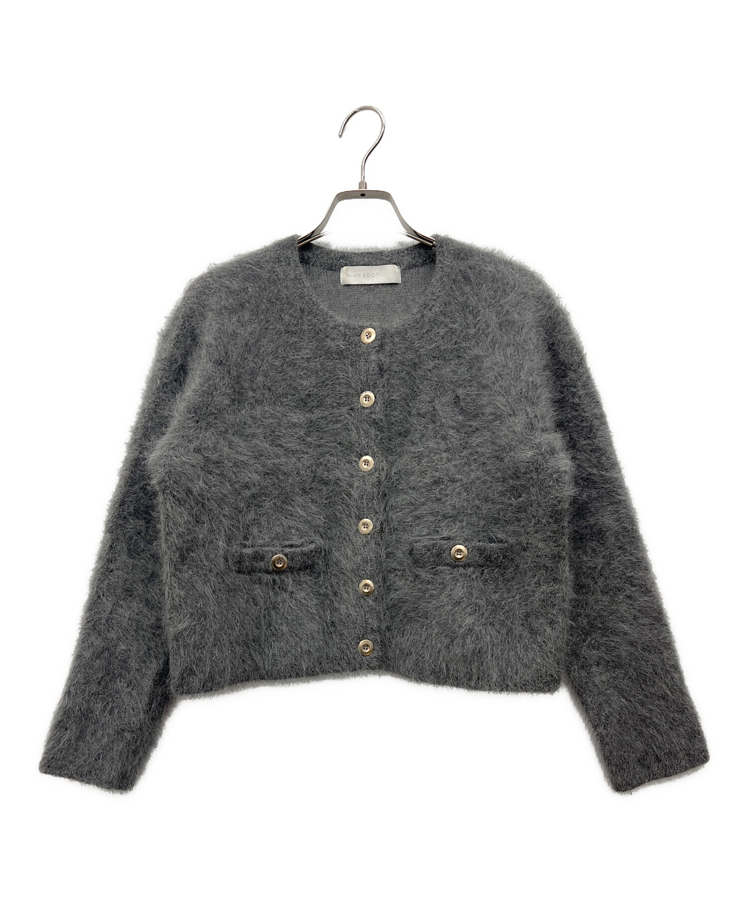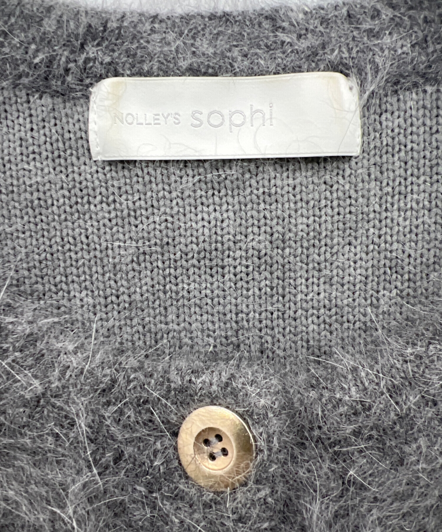 • NOLLEY'S sophi(ノーリーズソフィー)NOLLEY'S sophi (ノーリーズソフィー) 接結編みアンゴラ混ニットジャケット グレー サイズ:38の古着・服飾アイテム タグヨゴレ有