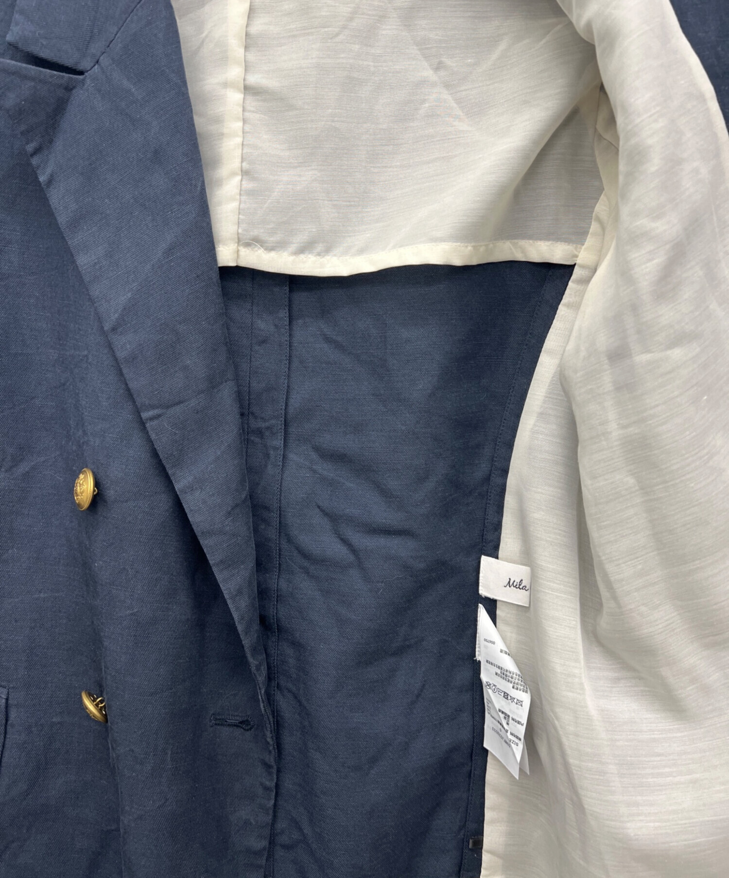 • Mila Owen(ミラオーウェン)Mila Owen (ミラオーウェン) ジャケット ネイビー サイズ:Sの古着・服飾アイテム 全体的にシワ、ヨゴレ、使用感有