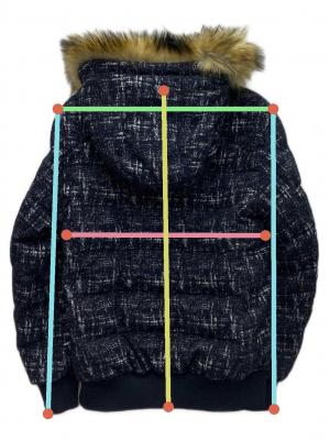 | 素材 | 表地 ポリエステル 65% 綿 33% ポリウレタン 2% リブ ポリエステル 100% 中綿 ダウン 80% フェザー 20% 別布・裏地 ポリエステル 100% フェイクファー部分 ポリエステル 100% |